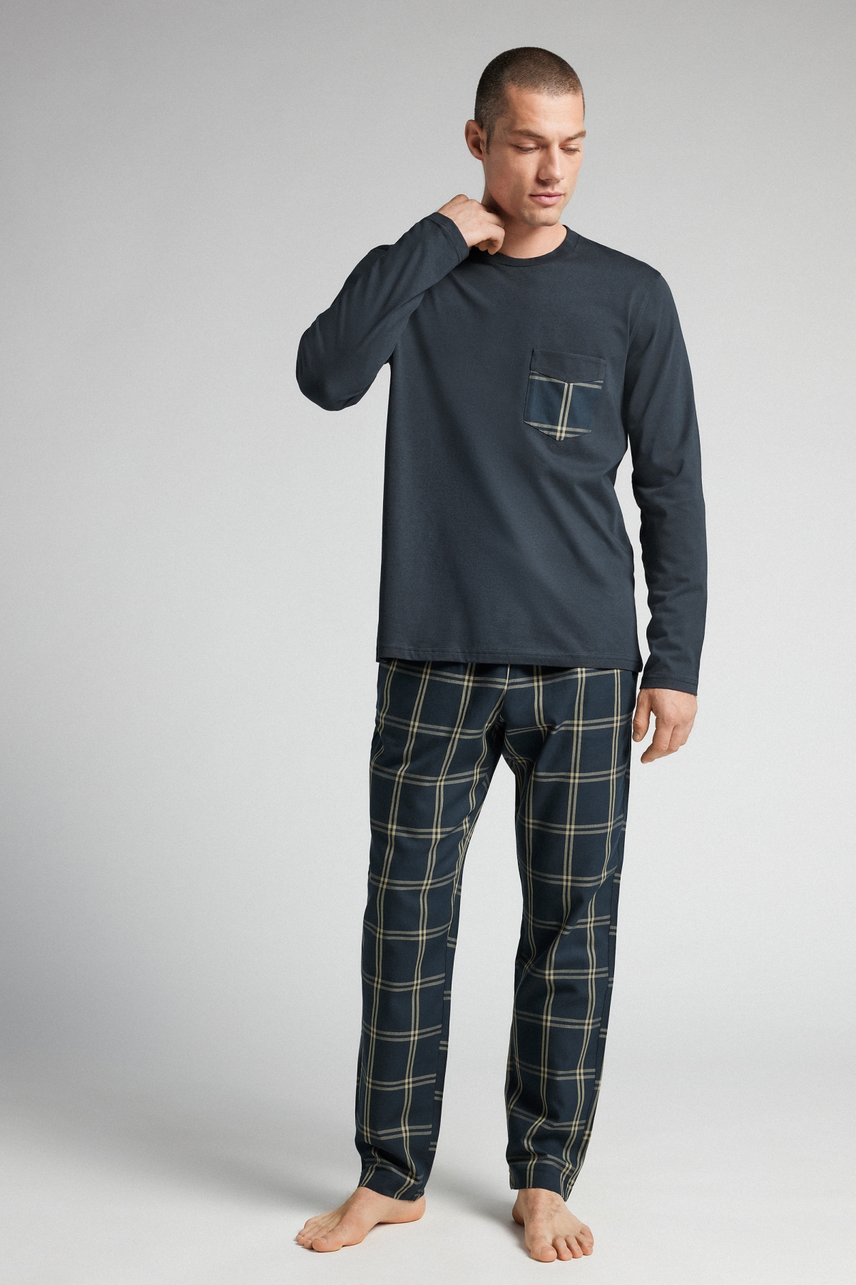 Длинная Пижама из Хлопка с Клетчатым Принтом