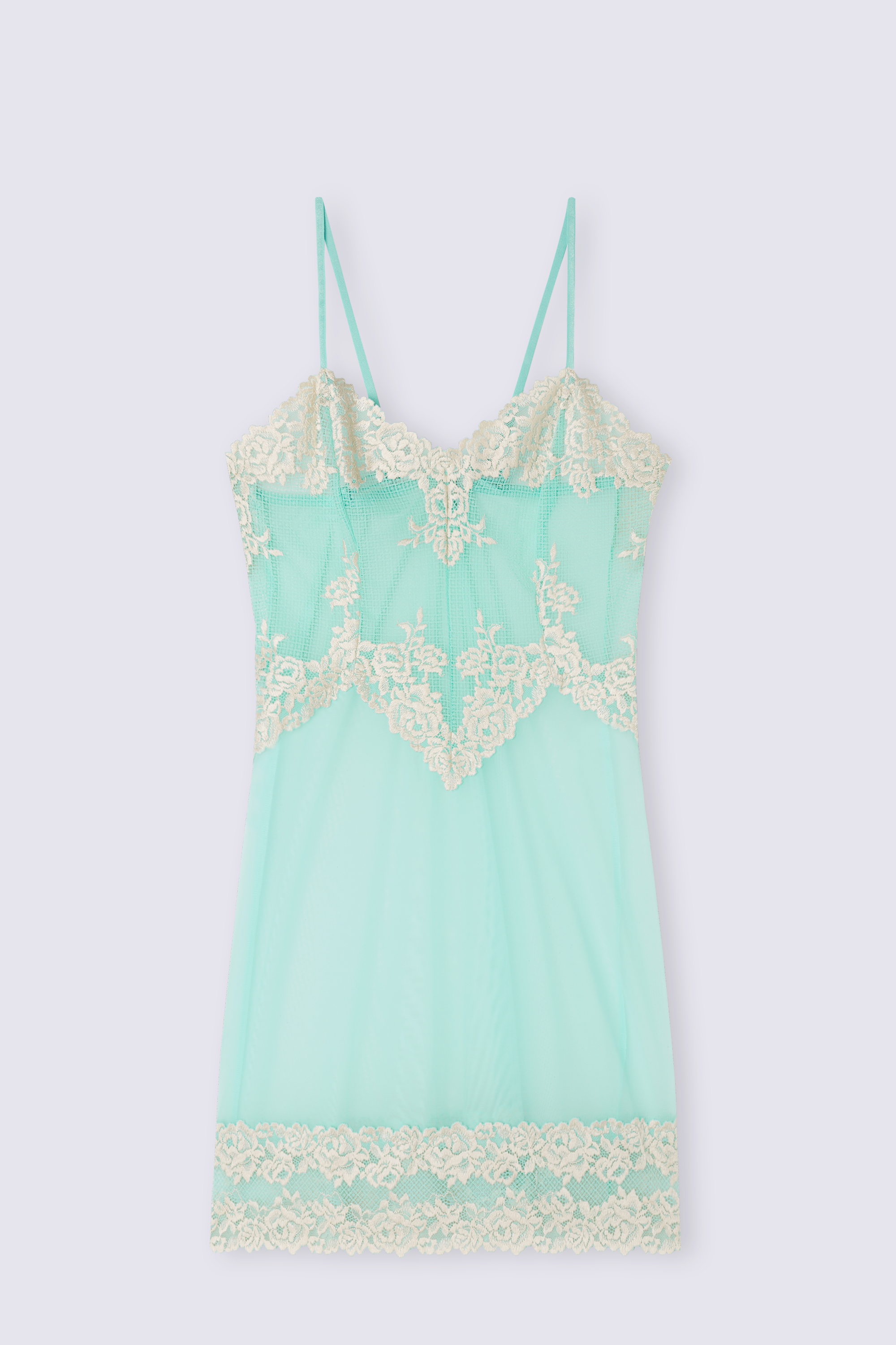 Комбинация беби-долл из кружева и тюля. Прозрачные ткани придают особую чувственность этой модели. В различных вариантах расцветки кружево может быть контрастным или тон в тон. Эластичные бретели полностью регулируются. Стандартная посадка.