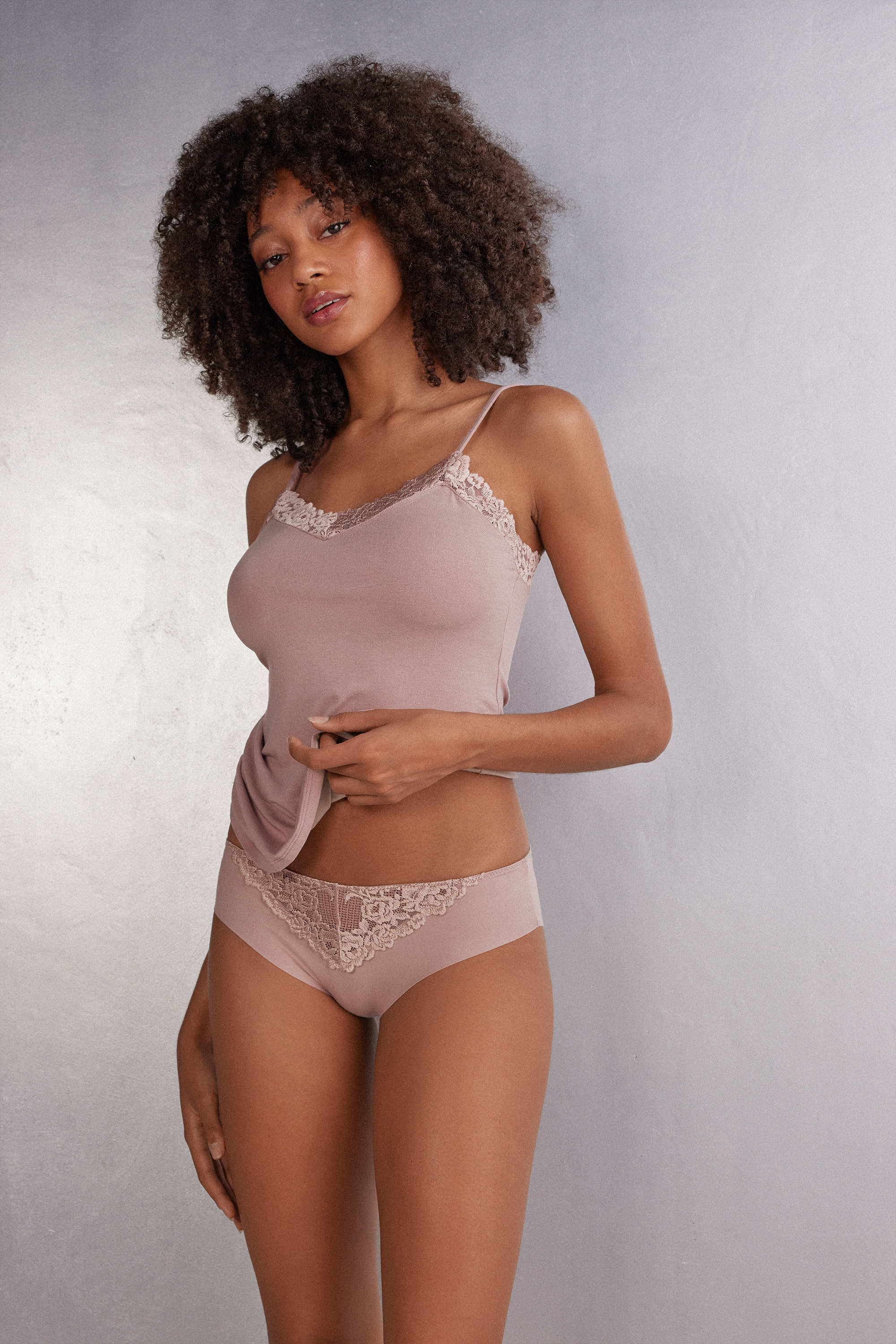 Классические слипы из эластичного хлопка с бесшовным краем на вырезе бедра. Спереди вставка из кружева. В различных вариантах расцветки кружево может быть контрастным или тон в тон. Ластовица: 100% хлопок.