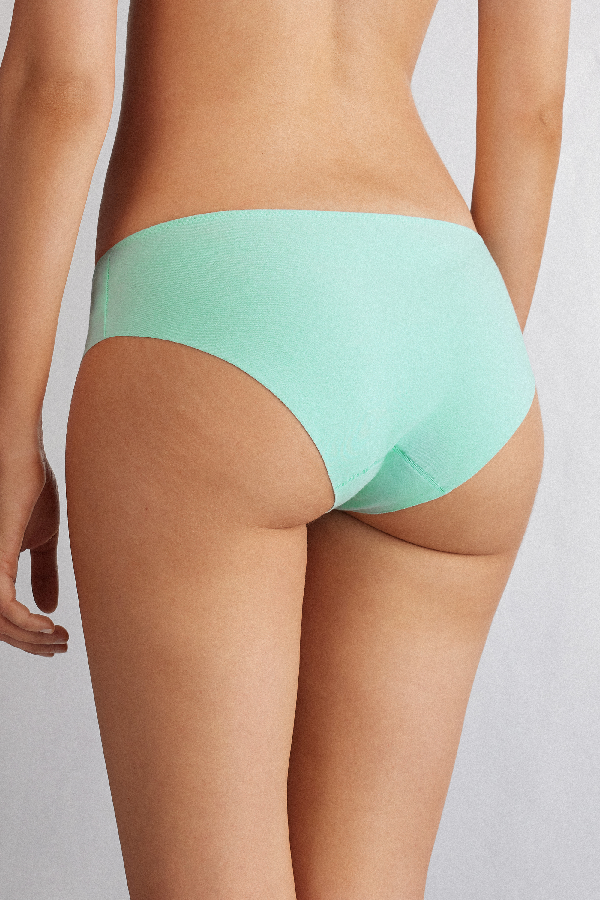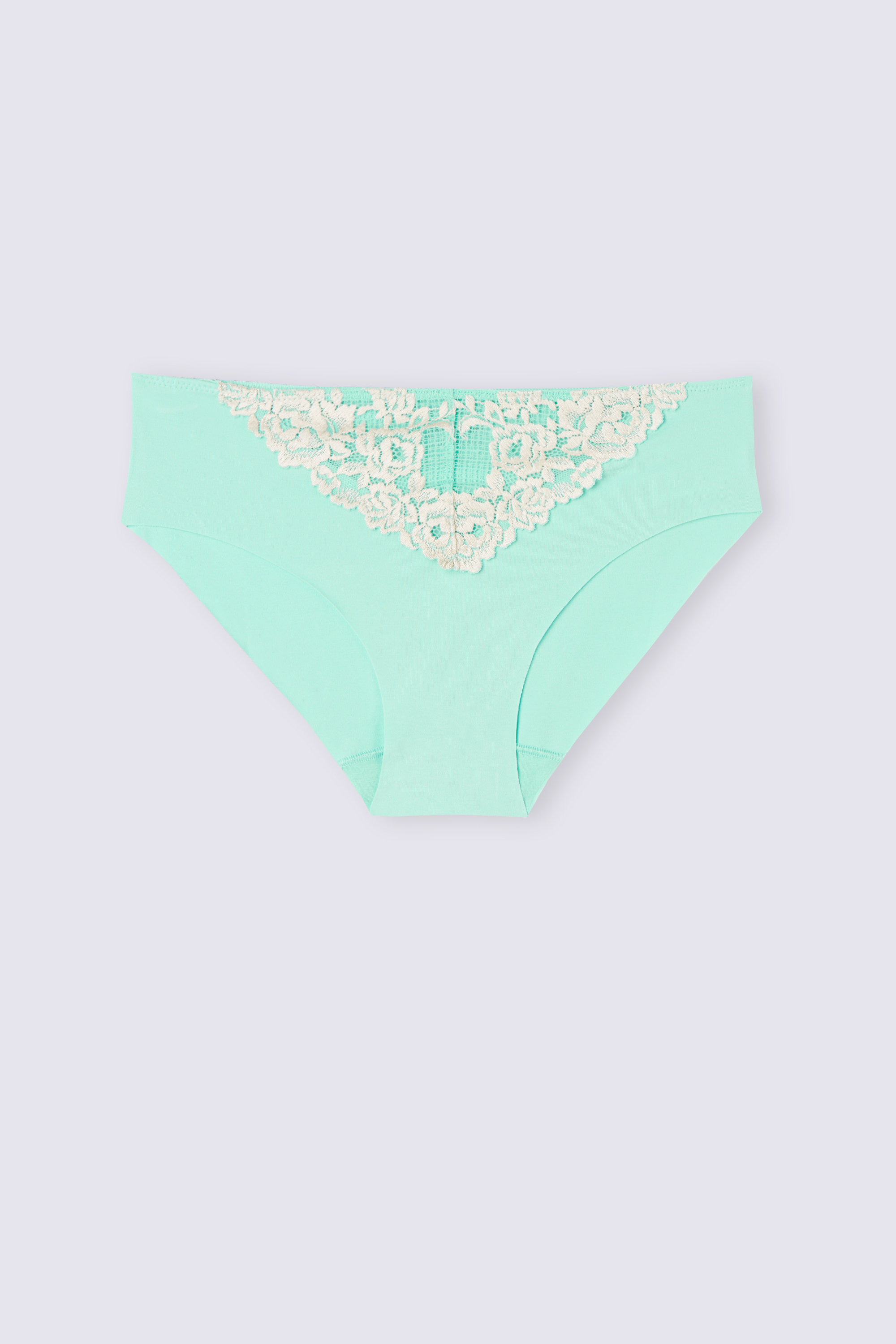 Классические слипы из эластичного хлопка с бесшовным краем на вырезе бедра. Спереди вставка из кружева. В различных вариантах расцветки кружево может быть контрастным или тон в тон. Ластовица: 100% хлопок.