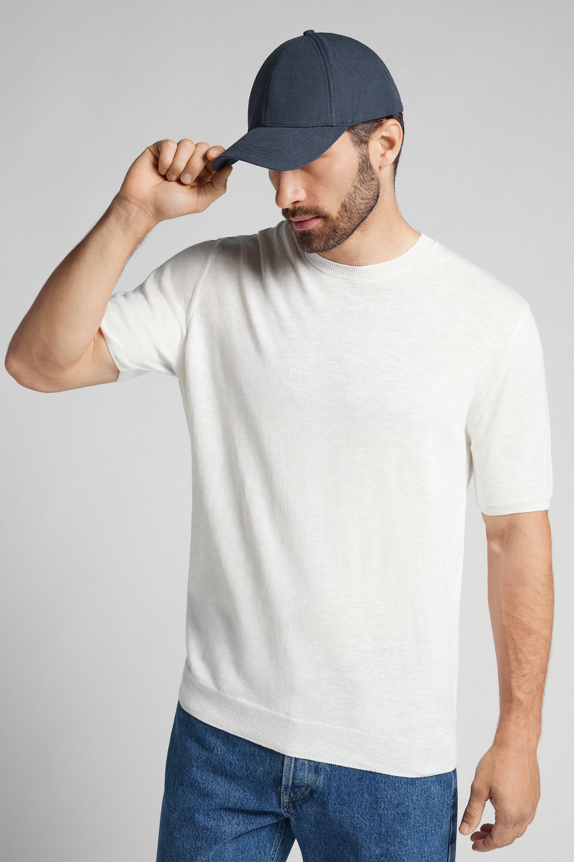 Бейсболка из хлопково-льняной ткани.