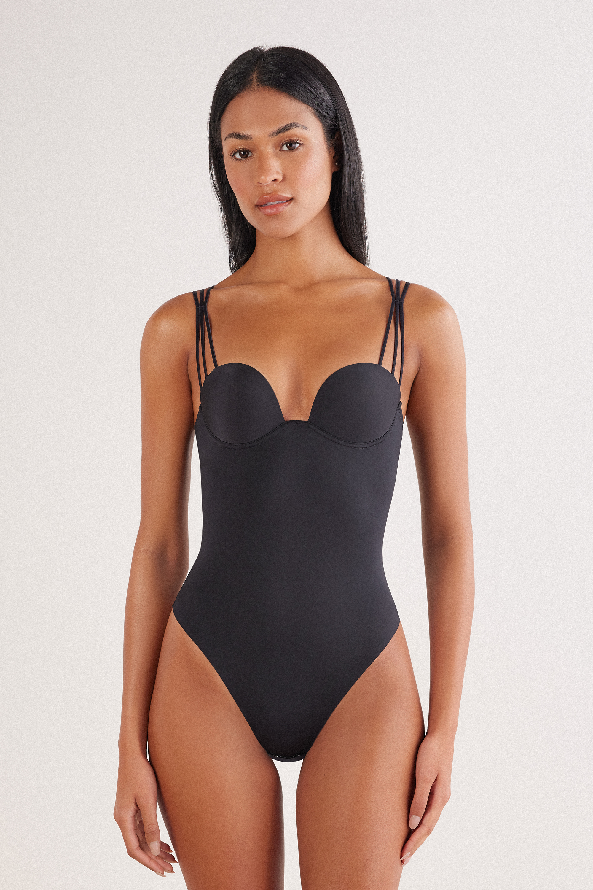 Боди с чашками Ilenia, выполненное из мягкой микрофибры Ultralight. Чашки и глубокий вырез подчеркивают привлекательность декольте, а бретели из трех эластичных тесемок придают образу женственность и чувственные нотки. Практичная и универсальная модель, которую можно носить на виду — под жакетом или прозрачным верхом.