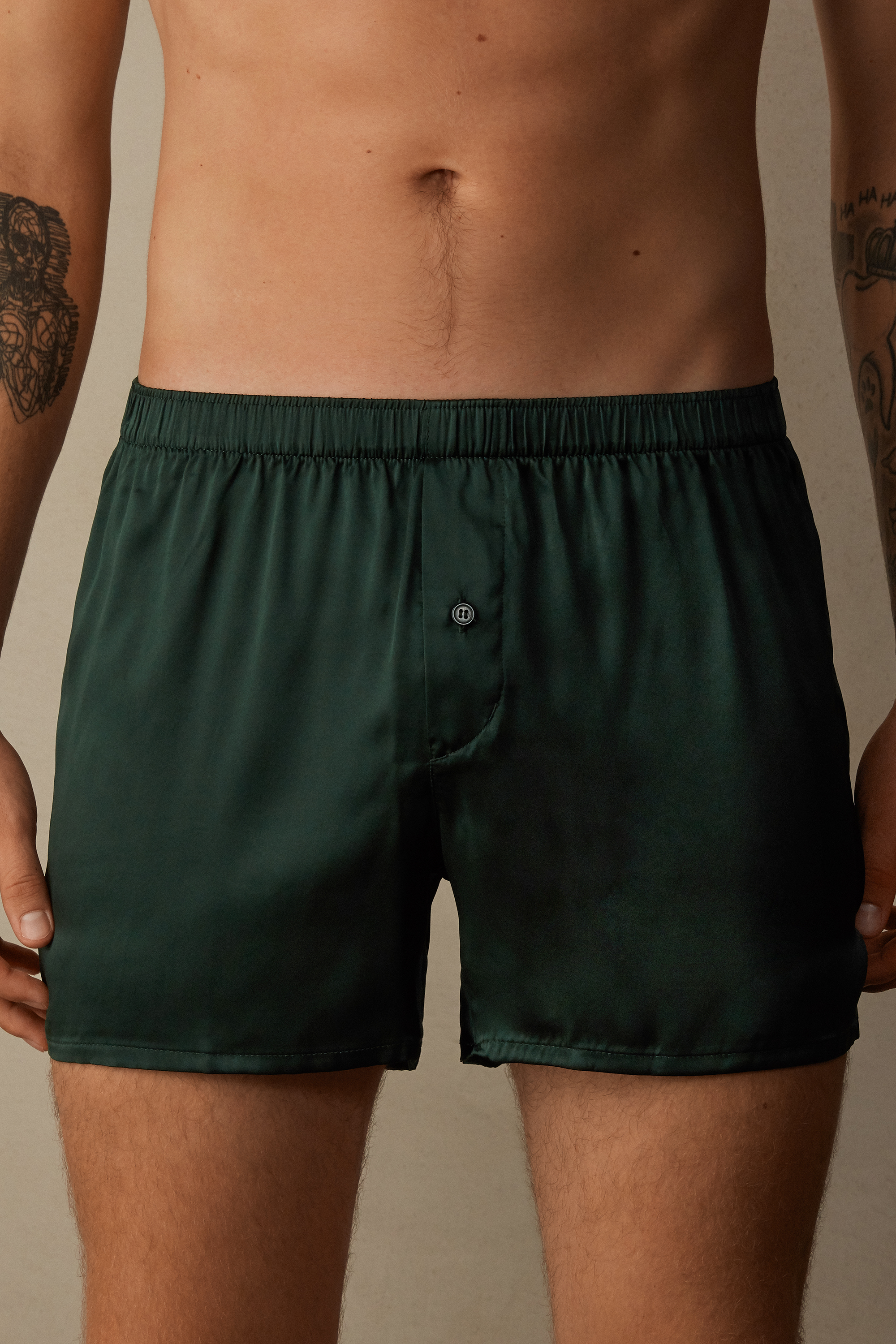 Шелковые боксеры. Пояс с резинкой внутри. Застежка на пуговицу.