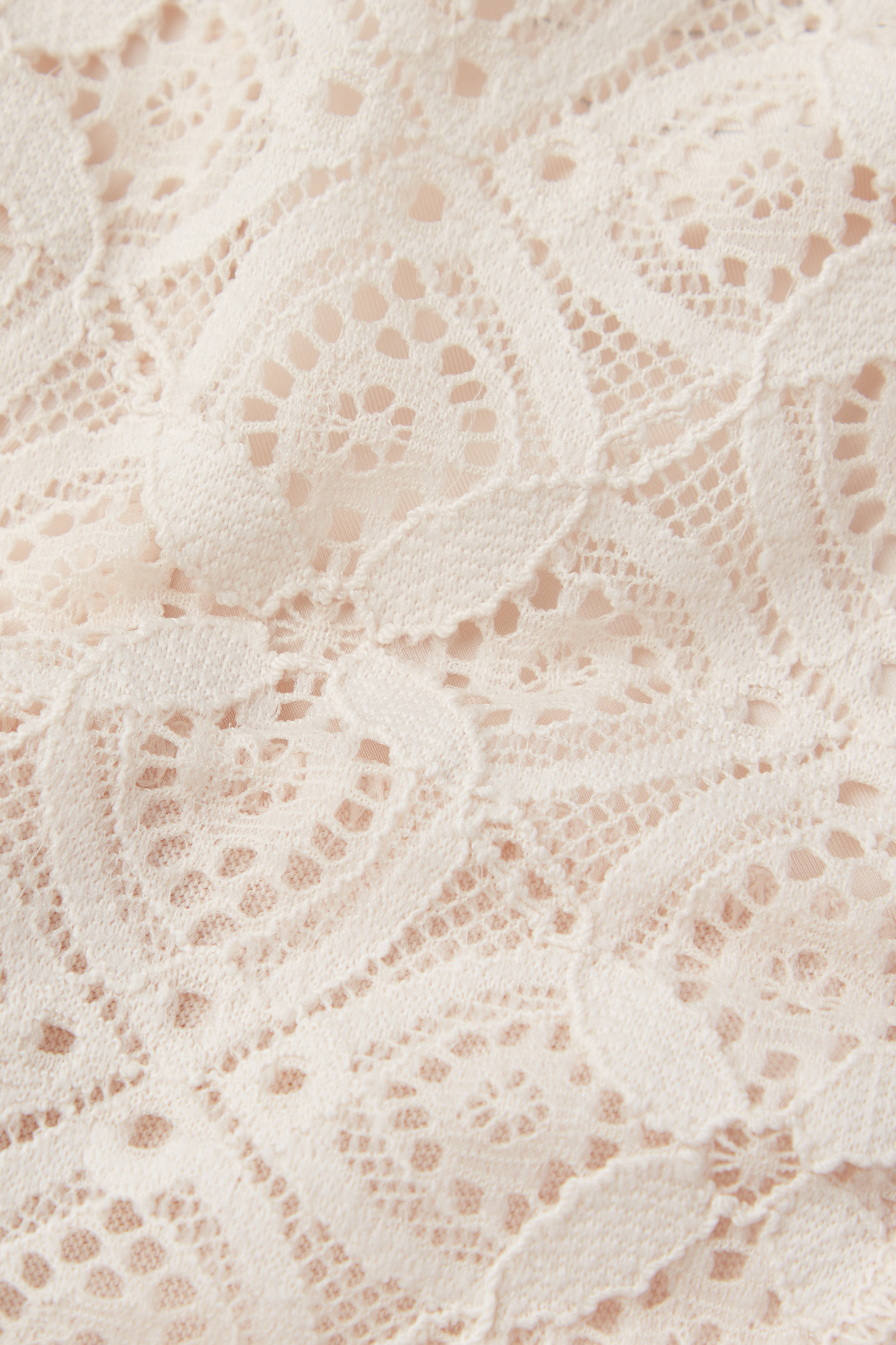 Кружево изготовлено из разлагаемой полиамидной пряжи, которая на 100% подлежит вторичной переработке и утилизируется в десять раз быстрее, чем обычный полиамид.