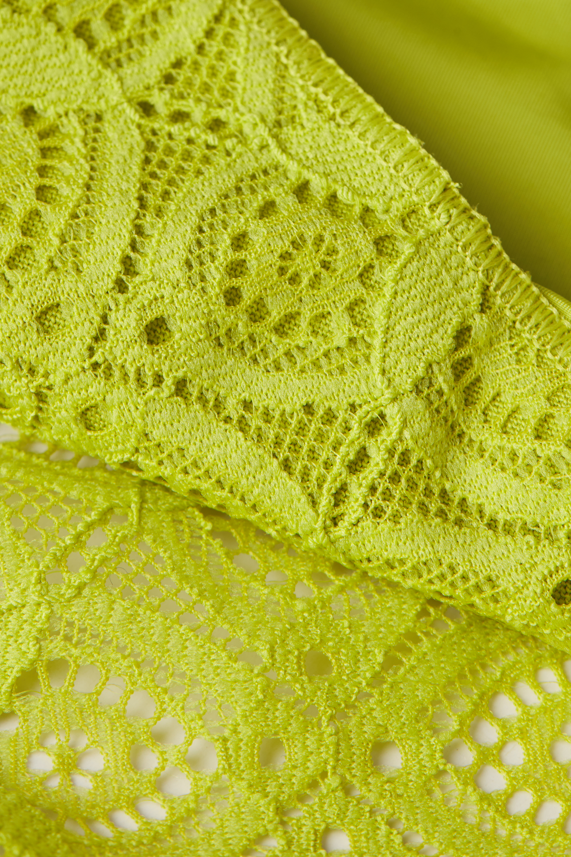 Кружево изготовлено из разлагаемой полиамидной пряжи, которая на 100% подлежит вторичной переработке и утилизируется в десять раз быстрее, чем обычный полиамид.