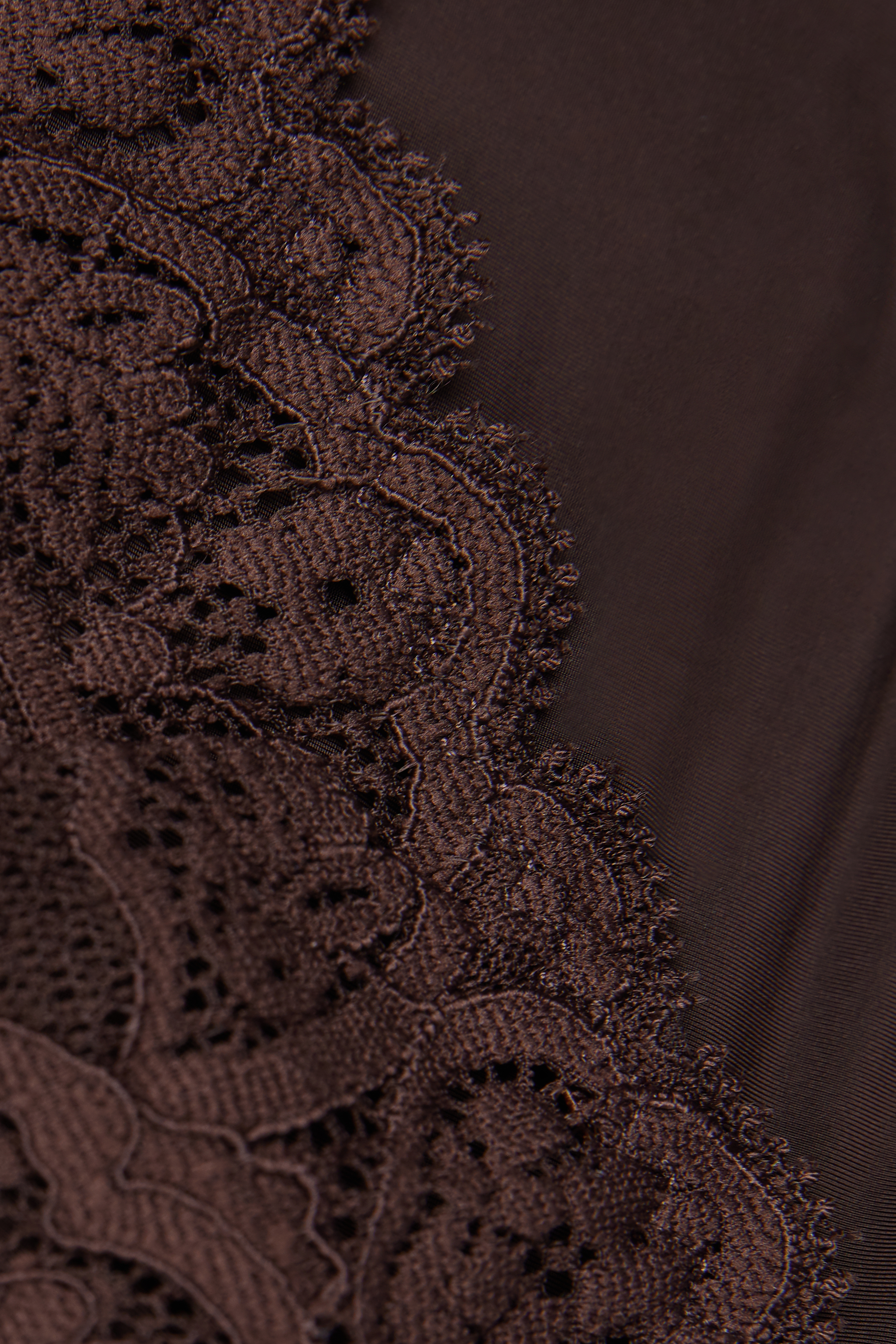 Бразильяно из мягкого эластичного кружева. Сзади: двухслойная мягкая микрофибра с бесшовными краями. Изысканная модель с оттенком чувственности — идеальный вариант для тех, кто ищет женственное белье, незаметное под облегающей одеждой.