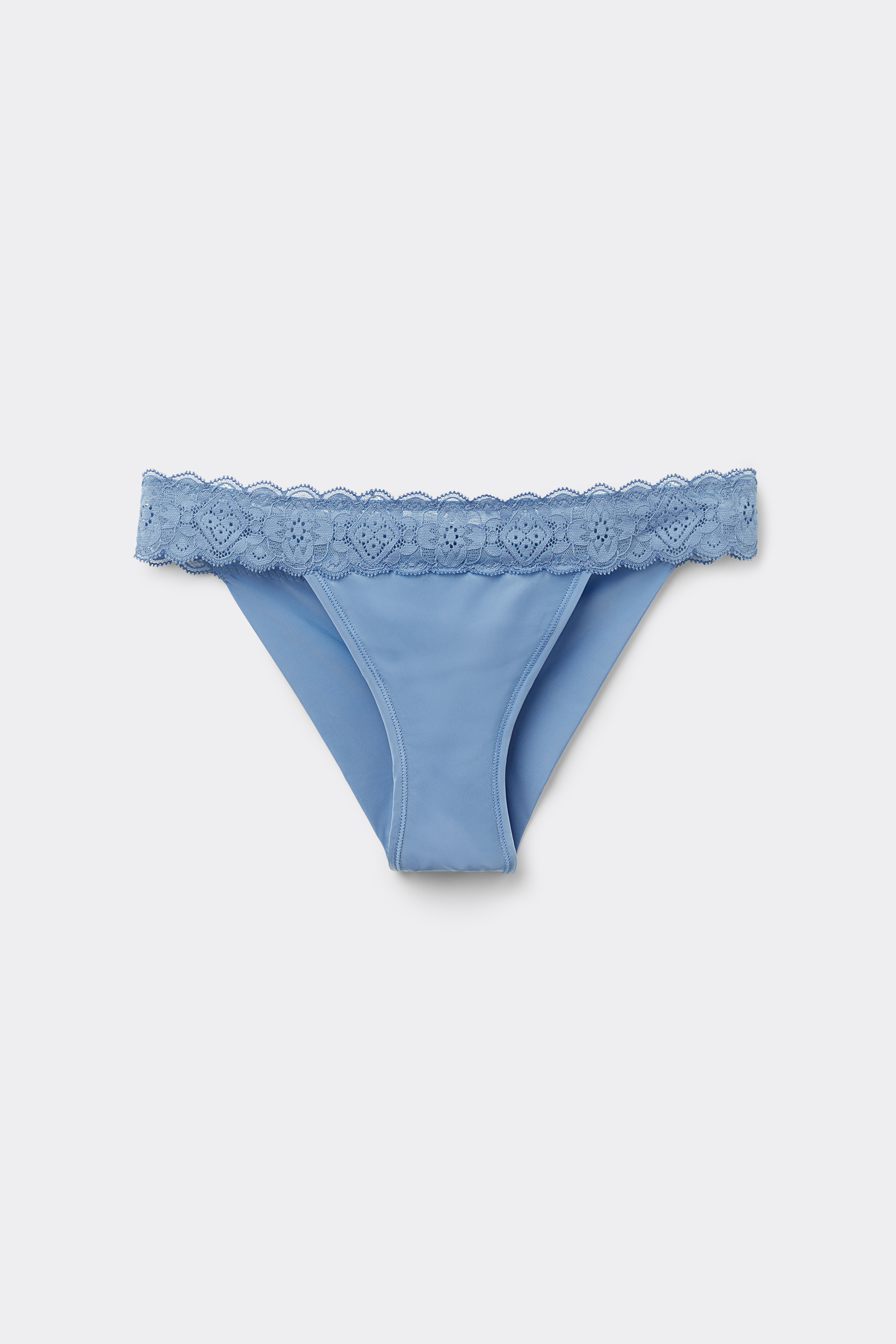 Бразильяно из мягкой микрофибры с кружевным поясом. Крой сзади более закрытый, чем в обычных трусах бразильяно.