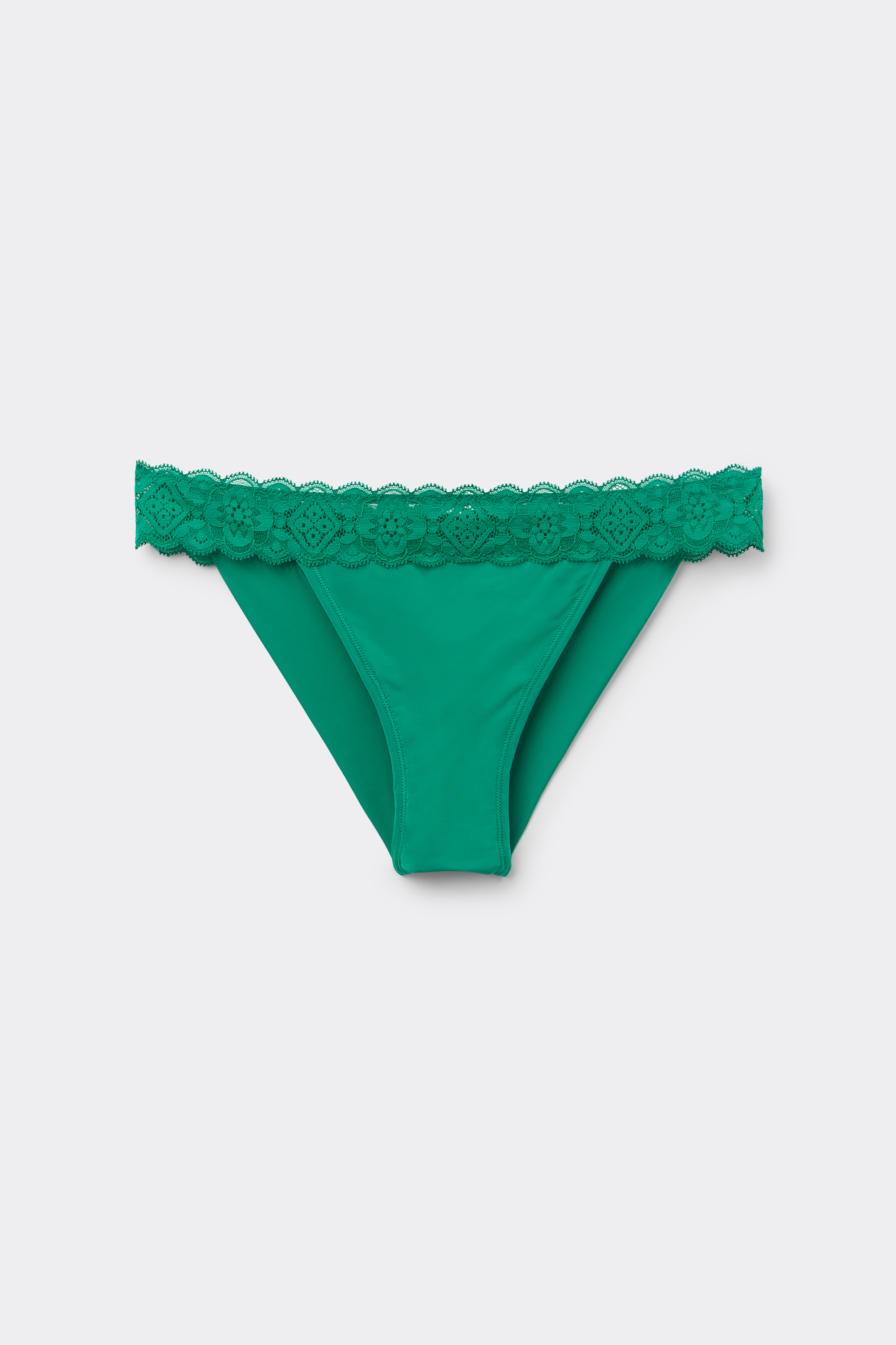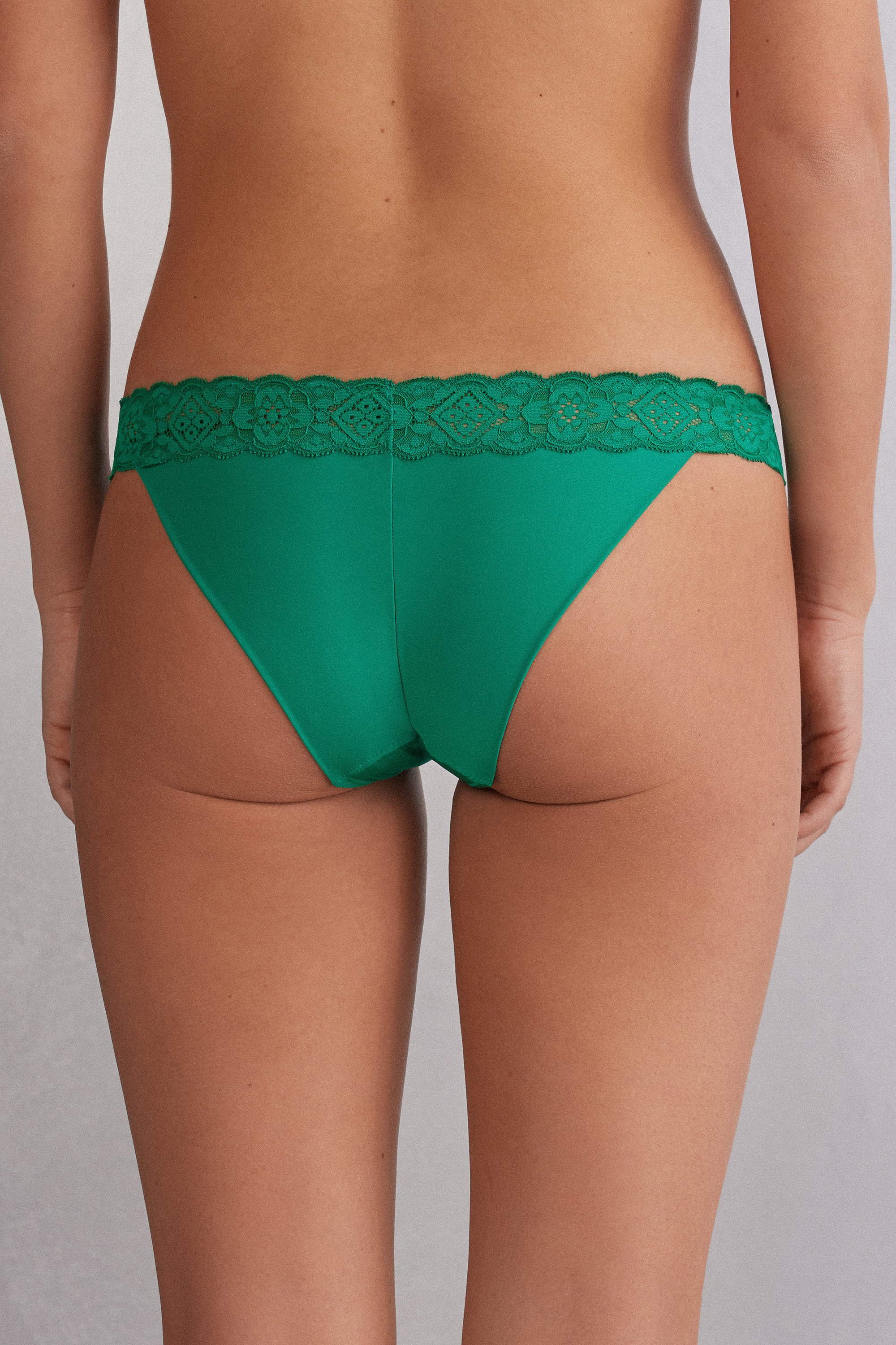 Бразильяно из мягкой микрофибры с кружевным поясом. Крой сзади более закрытый, чем в обычных трусах бразильяно.