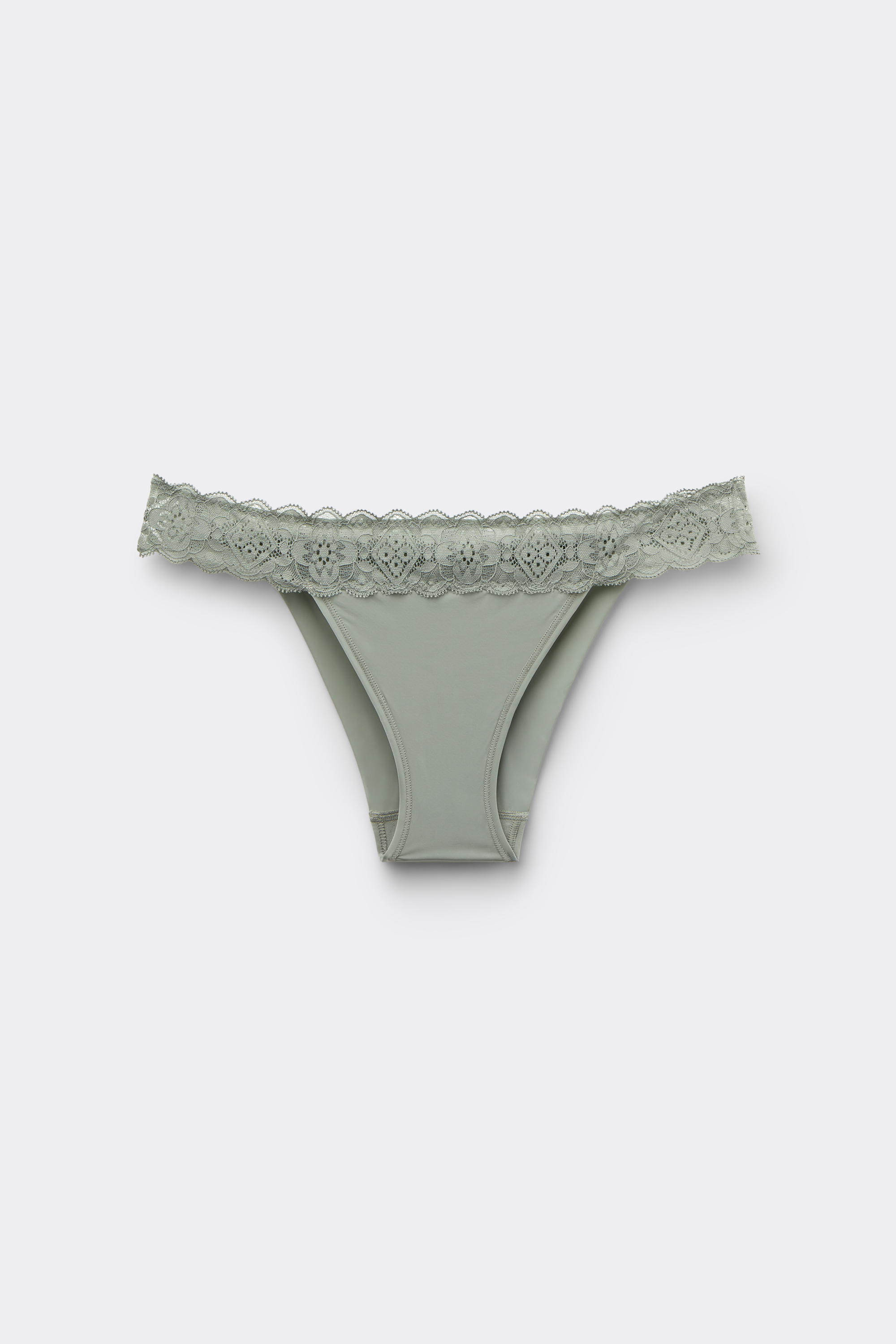 Бразильяно из мягкой микрофибры с кружевным поясом. Крой сзади более закрытый, чем в обычных трусах бразильяно.