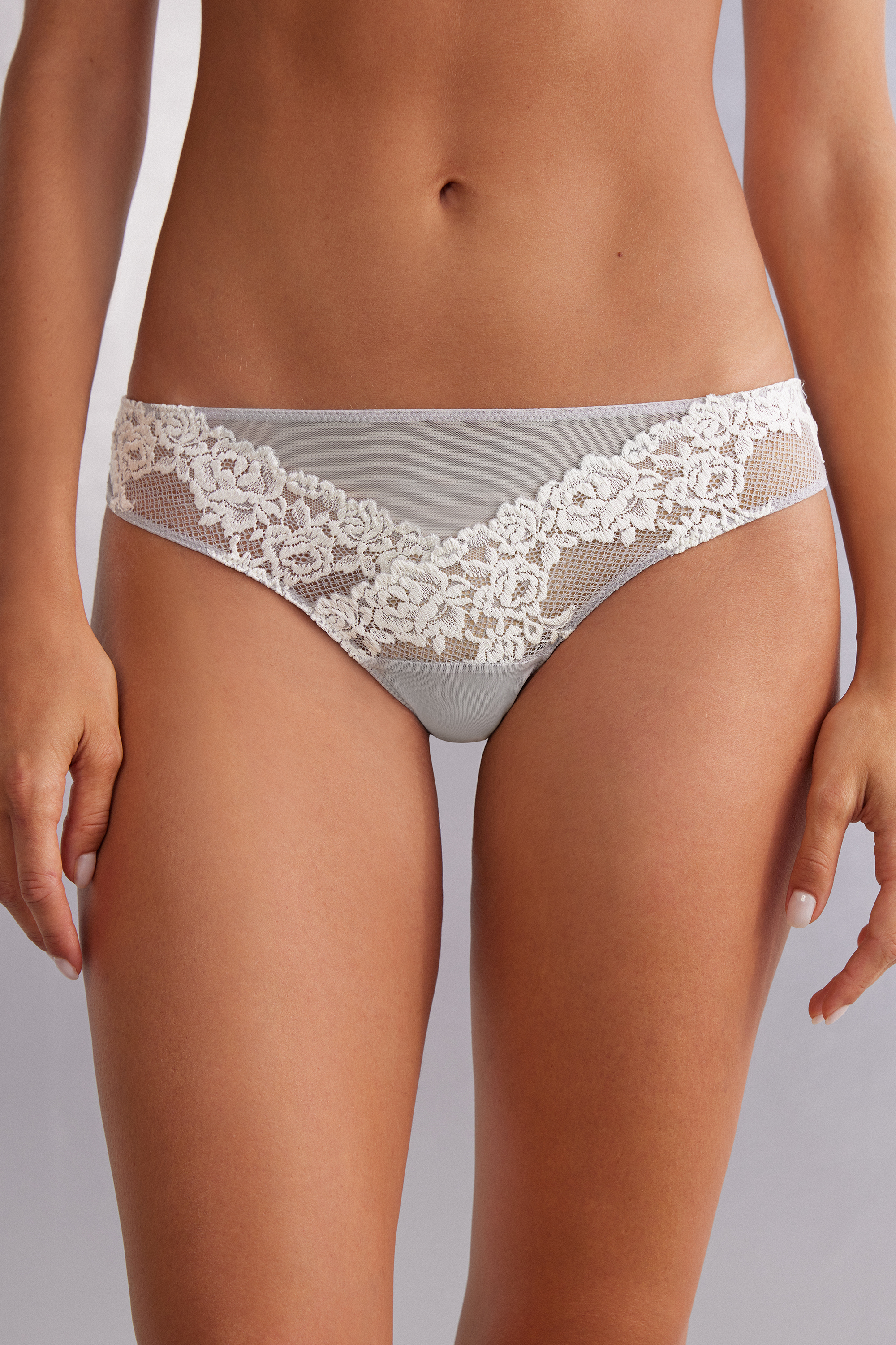 Бразильяно из тюля с кружевными деталями. В различных вариантах расцветки кружево может быть контрастным или тон в тон. Ластовица: 100% хлопок.