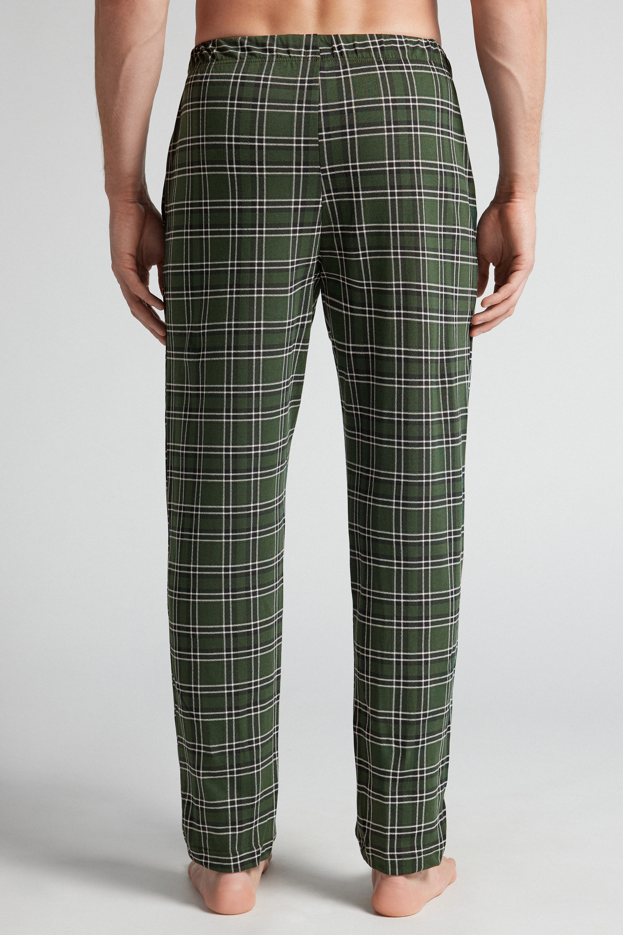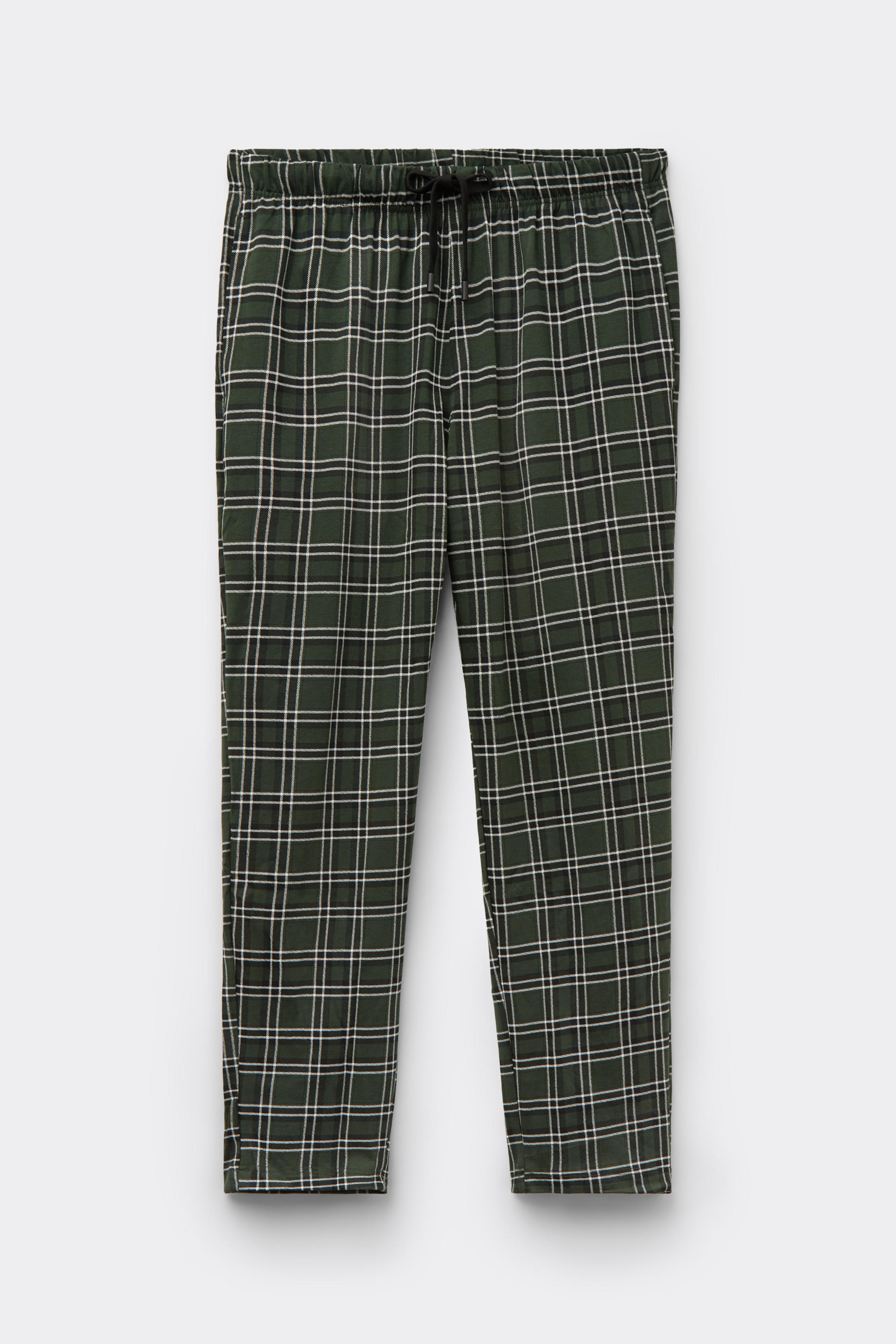 Брюки из хлопкового джерси в клетку зеленых оттенков. Эта модель подходит как для сна, так и для отдыха дома.