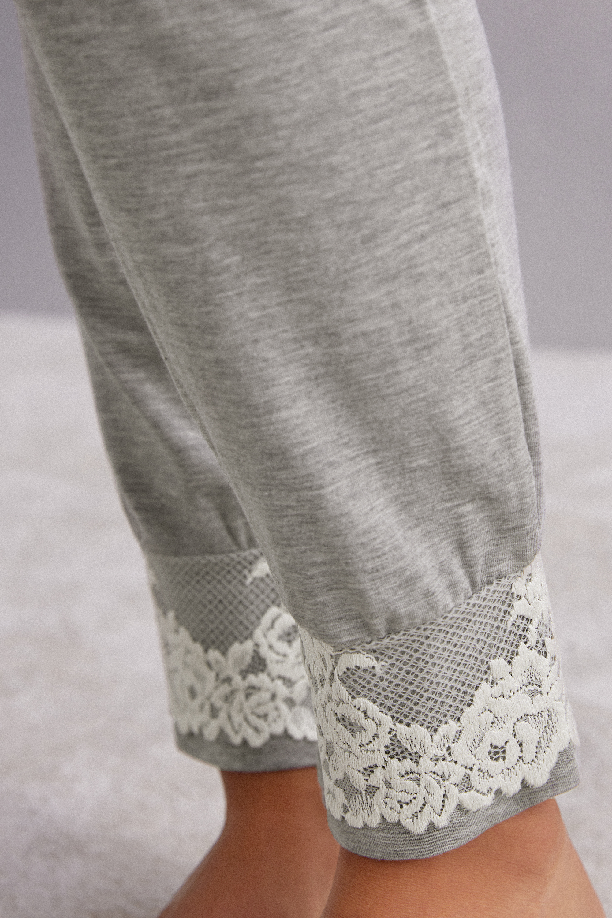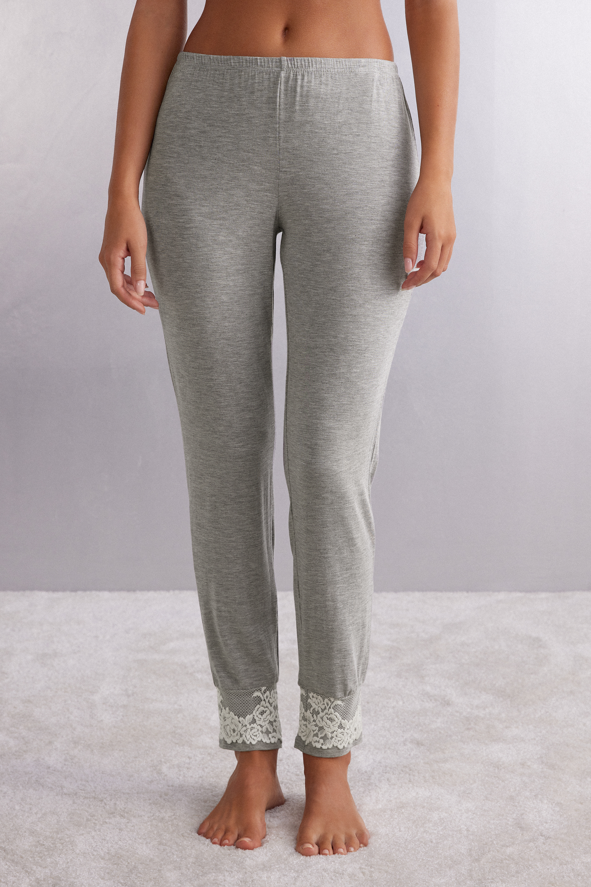 Брюки из модала. Высокие манжеты с каймой из двухцветного кружева. Стандартная посадка.