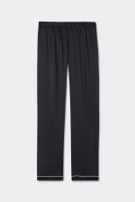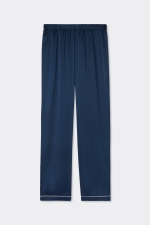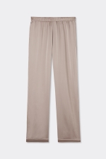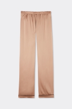 Брюки из слегка эластичного шелкового атласа. Внизу отделка контрастным кантом в нескольких вариантах цвета. Это удобное и элегантное изделие можно использовать в качестве пижамы или изысканной домашней одежды.