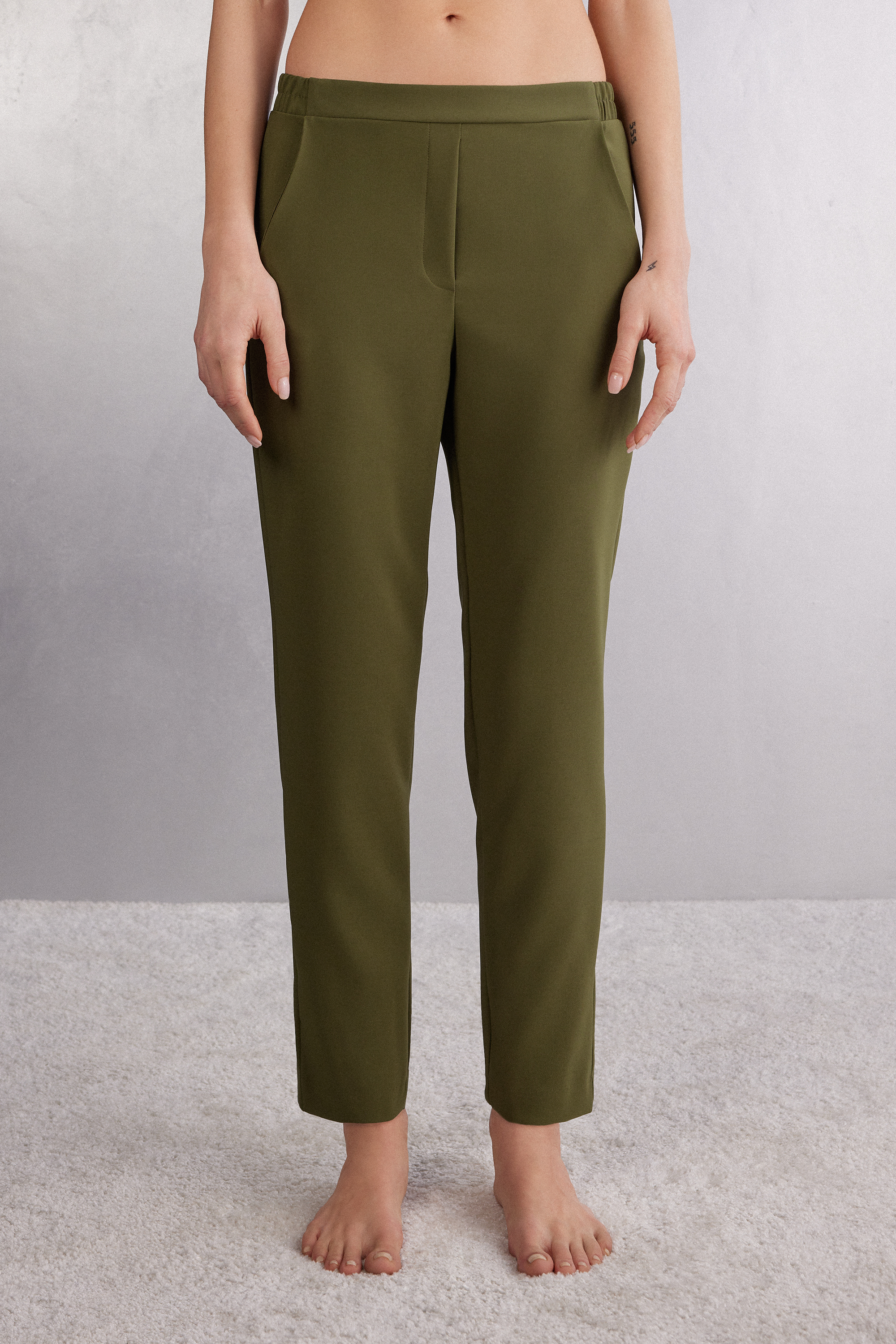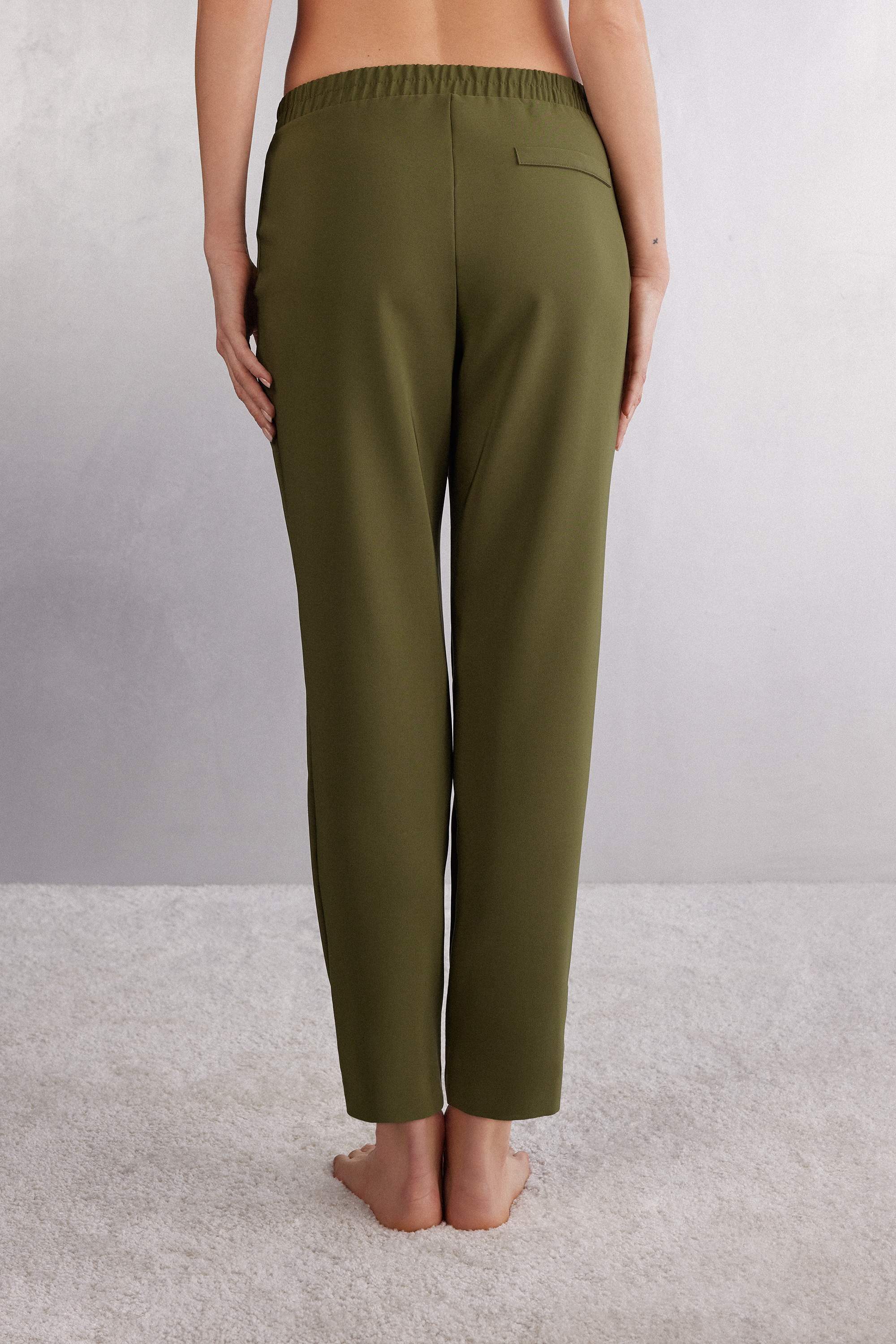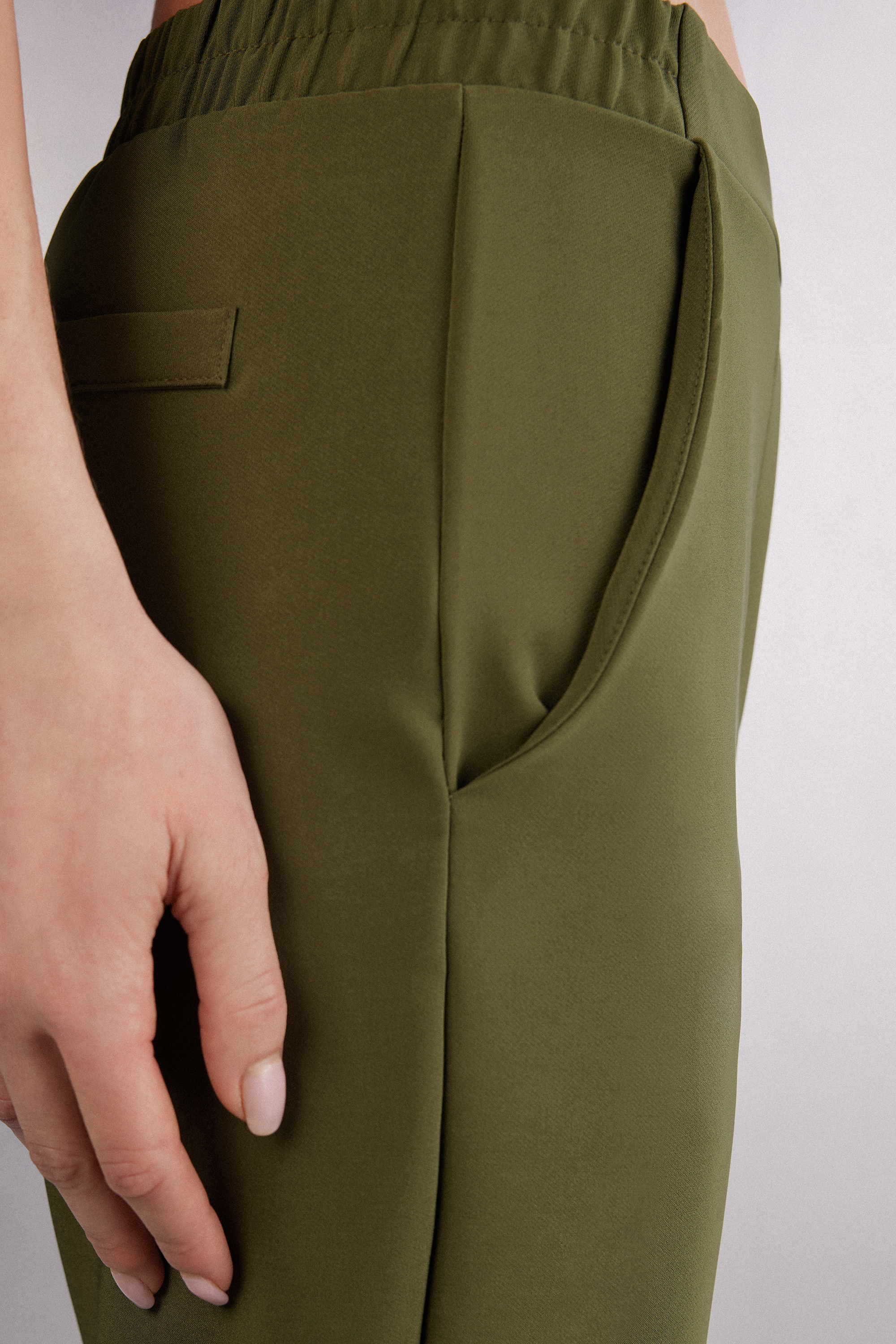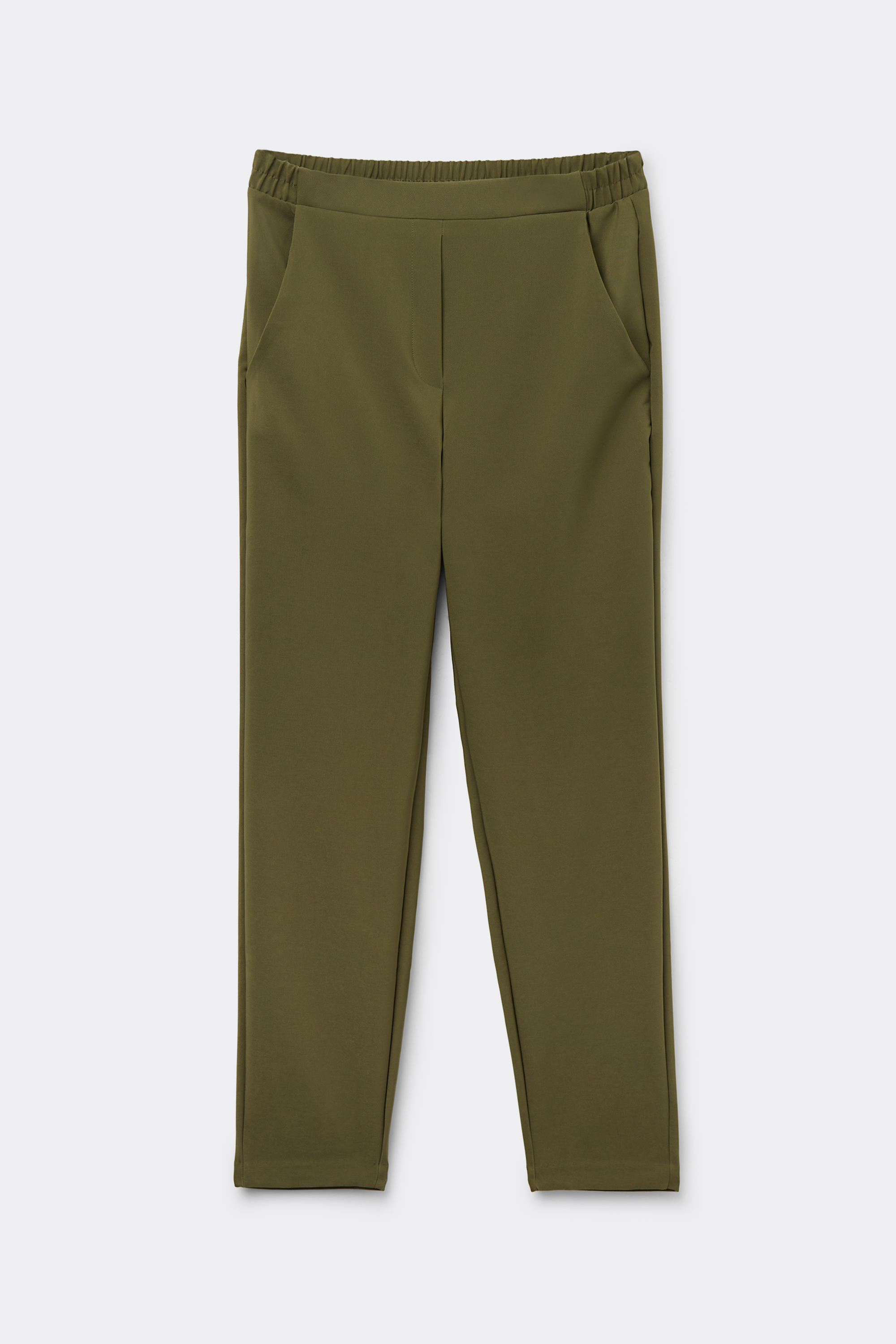 Брюки длинные, выполненные с двумя карманами и одним фальшивым карманом сзади. Резинка на талии вшита в пояс.