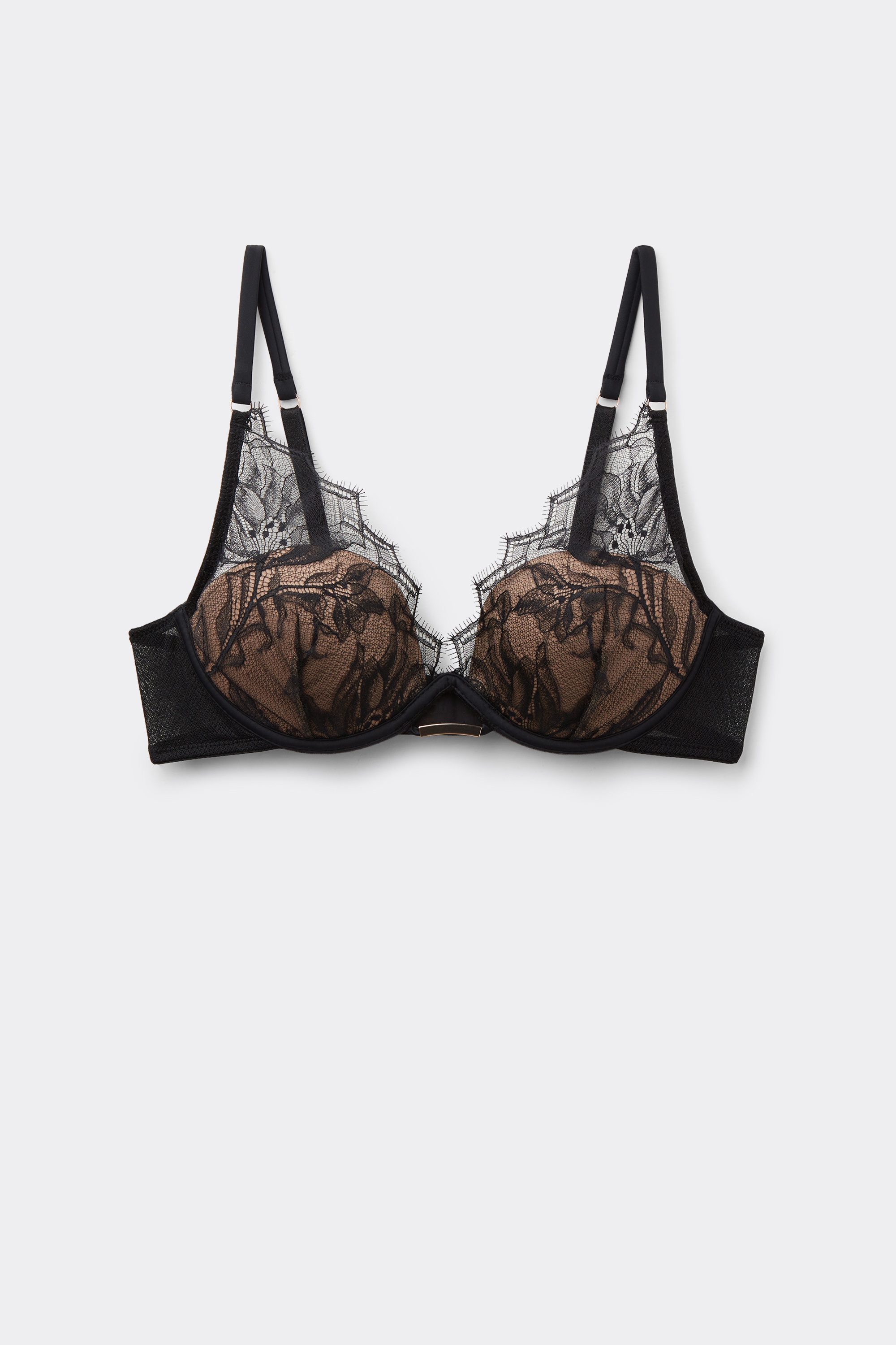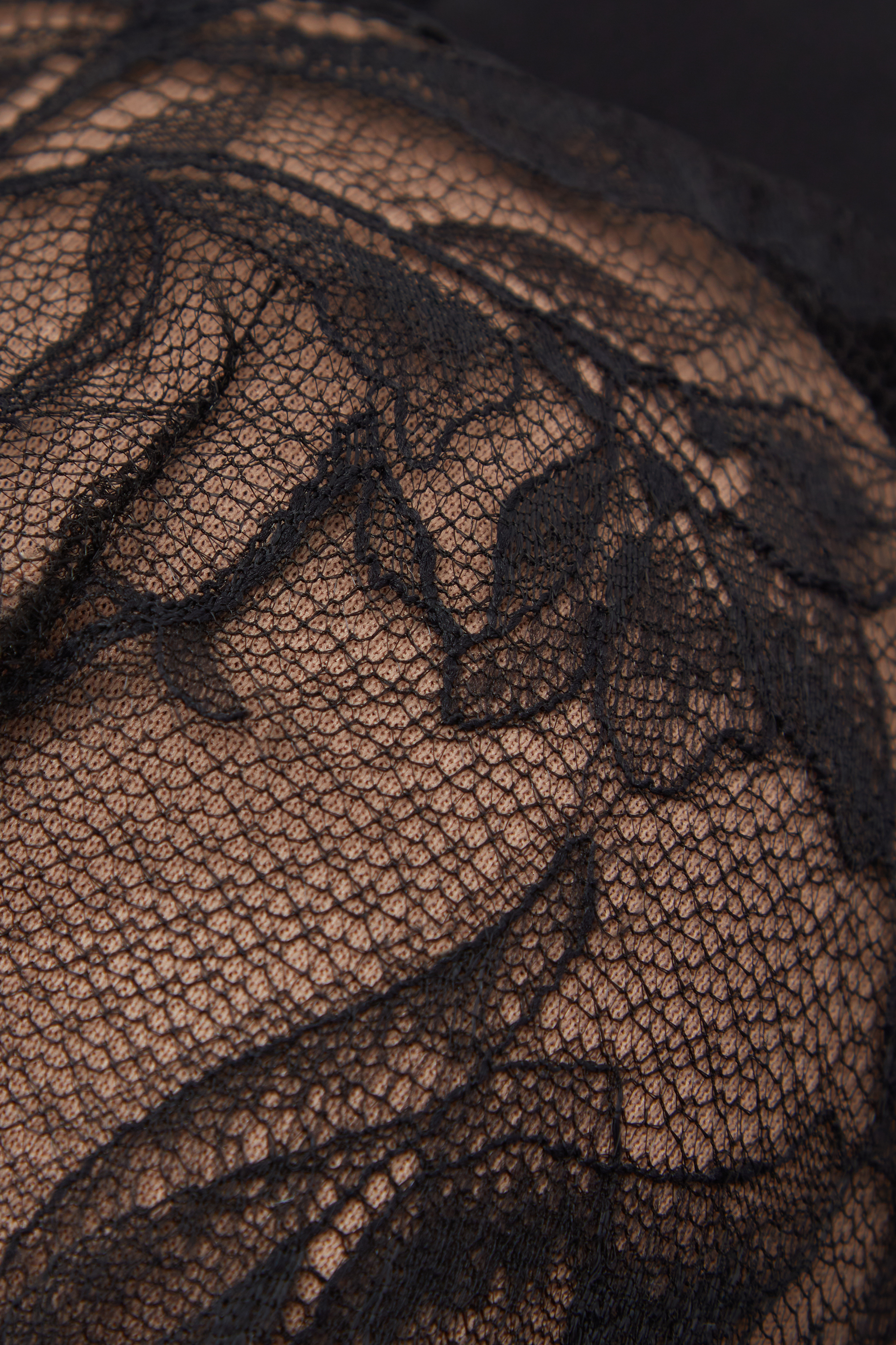 Элегантный бюстгальтер балконет Elena из чувственного ресничного кружева шантильи с цветочным узором. Геометричные фестончатые края обрамляют декольте. По центру груди изящный аксессуар. Отделка из микрофибры. Чашки с удлиненной верхней частью треугольной формы обеспечивают превосходную поддержку.