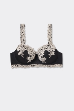 Бюстгальтер балконет Sofia со слегка уплотненными чашками на косточке, которые хорошо охватывают и поддерживают грудь. Изысканная модель из элегантного кружева представлена в двух вариантах: двухцветном и тон в тон. Благодаря поясу с подкладкой из тюля бюстгальтер плотно прилегает к телу. Бретели регулируются на спинке. В больших размерах предусмотрен более широкий пояс и вставка в чашках для лучшего охвата и поддержки груди. Модель обеспечивает оптимальную поддержку и подчеркивает зону декольте, округляя формы. Идеально подходит для создания женственного чувственного образа.
