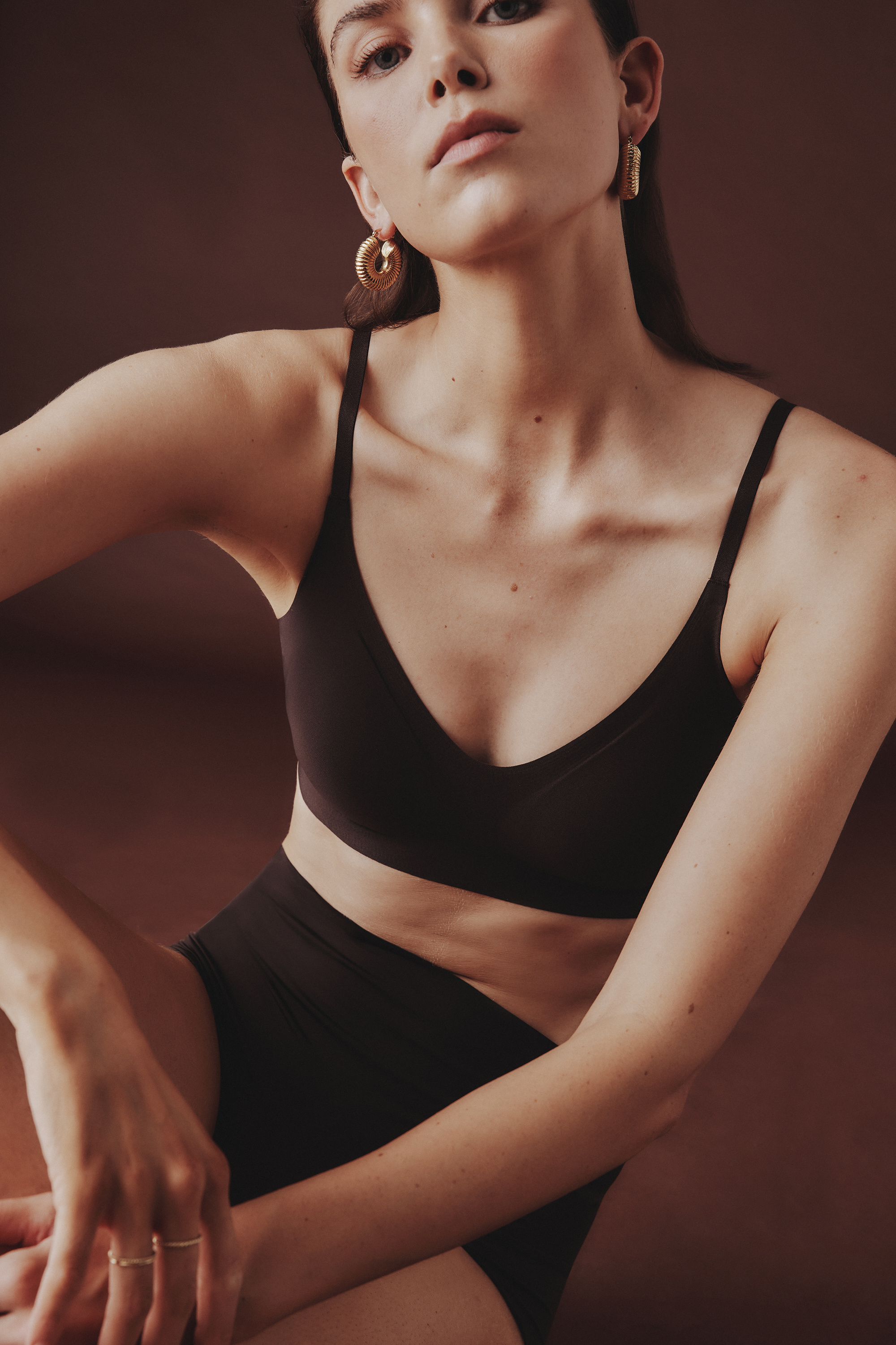 Удобный и облегающий, этот бесшовный брасьер из мягкой микрофибры — идеальное белье, незаметное под платьем. Модель обеспечивает максимальный комфорт, адаптируется к телу и не стесняет движений. Для большего эффекта объема можно вставить мягкие вкладыши. Бюстгальтер, который можно носить с утра до вечера (и даже ночью).