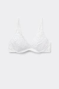 Бюстгальтер балконет из эластичного кружева с крупным цветочным узором. Чашки с уплотнением. Исключительно комфортный бюстгальтер, придающий груди красивую естественную форму. Эту модель можно надевать под одежду с глубоким вырезом или под прозрачный топ для создания более провокационного образа. Романтический женственный стиль с ноткой гламура.