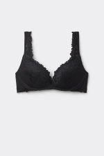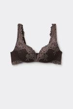 Бюстгальтер Gioia с эффектом супер пуш-ап. Формованные чашки с объемным градуированным уплотнением, без косточек. Эта изысканная модель выполнена из элегантного эластичного кружева с цветочной вышивкой тон в тон или контрастного цвета. Бретели, обтянутые кружевом, регулируются на спинке. Бюстгальтер позволяет создать потрясающий эффект, увеличивая объем груди на два размера.