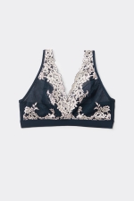 Бюстгальтер Lara треугольной формы с мягкими чашками без уплотнения и косточек. Эта изысканная модель выполнена из элегантного эластичного кружева с цветочной вышивкой тон в тон или контрастного цвета. Чашки из эластичного кружева с нижним слоем из мягкого тюля. Боковые косточки и пояс из микрофибры помогают поддерживать грудь. Пояс на подкладке из тюля для лучшей поддержки. Бретели регулируются на спинке. В размерах 90C, 95B и 95C бретели укреплены тюлем для лучшей поддержки. Очень мягкий и удобный бюстгальтер для тех, кто ценит естественность и женственность в образе.