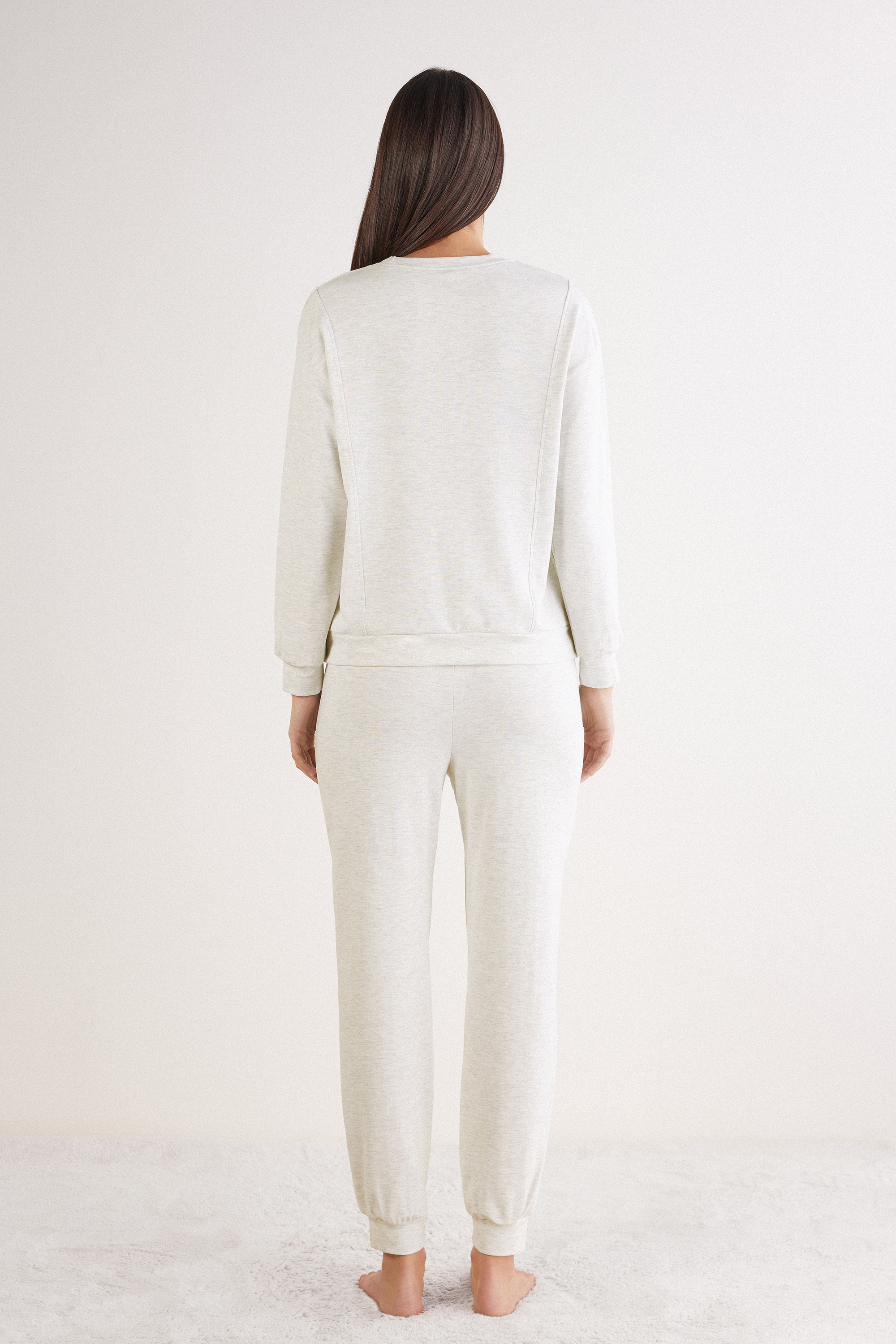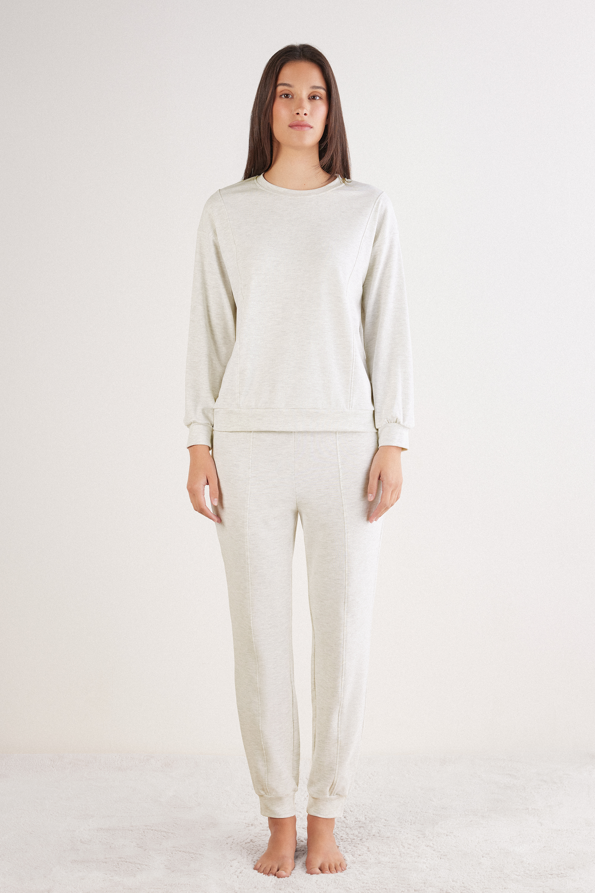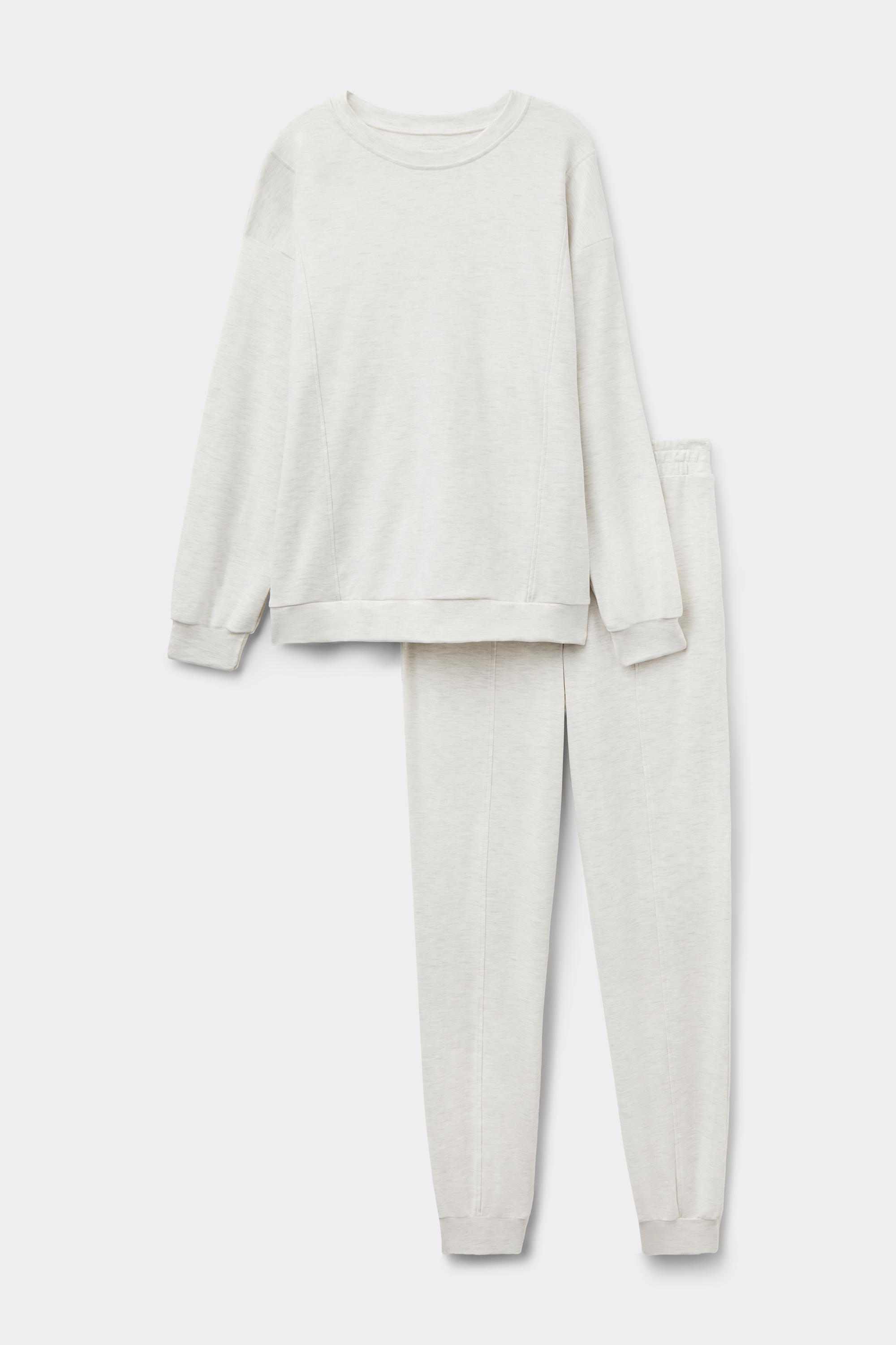 Пижама из мягкой меланжевой ткани на основе модала. Практичная модель, которую также можно использовать как комплект удобной одежды для отдыха и досуга.