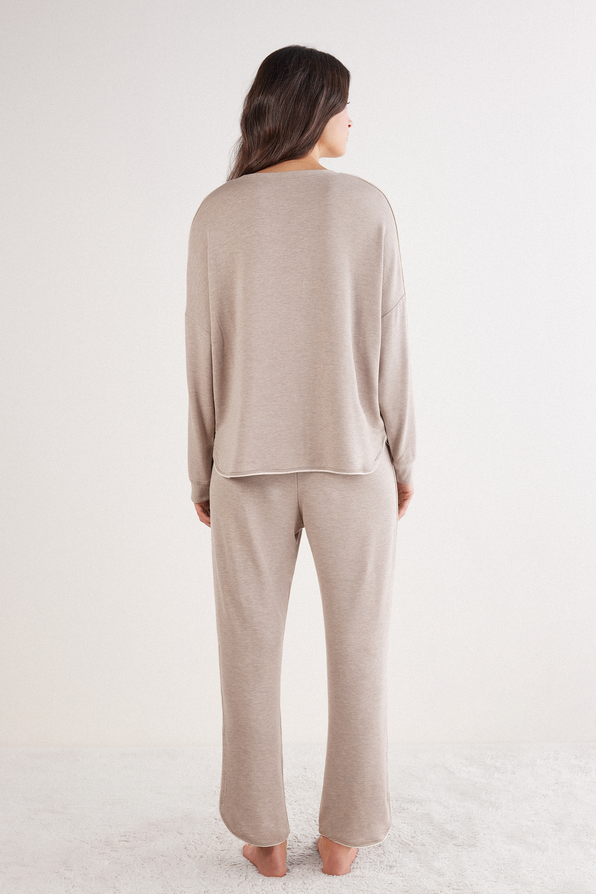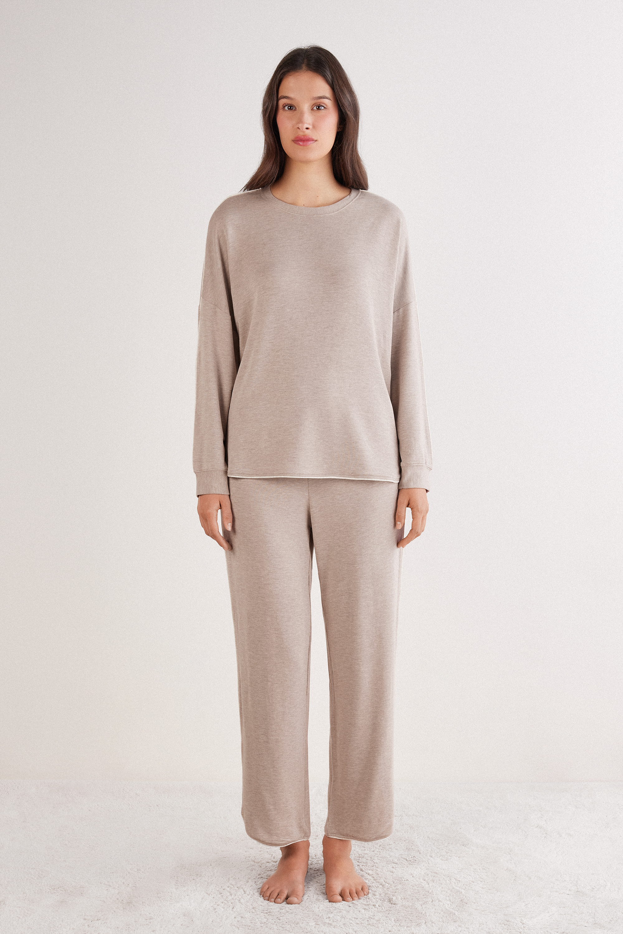 Длинная пижама из очень мягкого и теплого модала с шерстью. Отделка контрастного цвета. Идеальная одежда для отдыха и досуга.