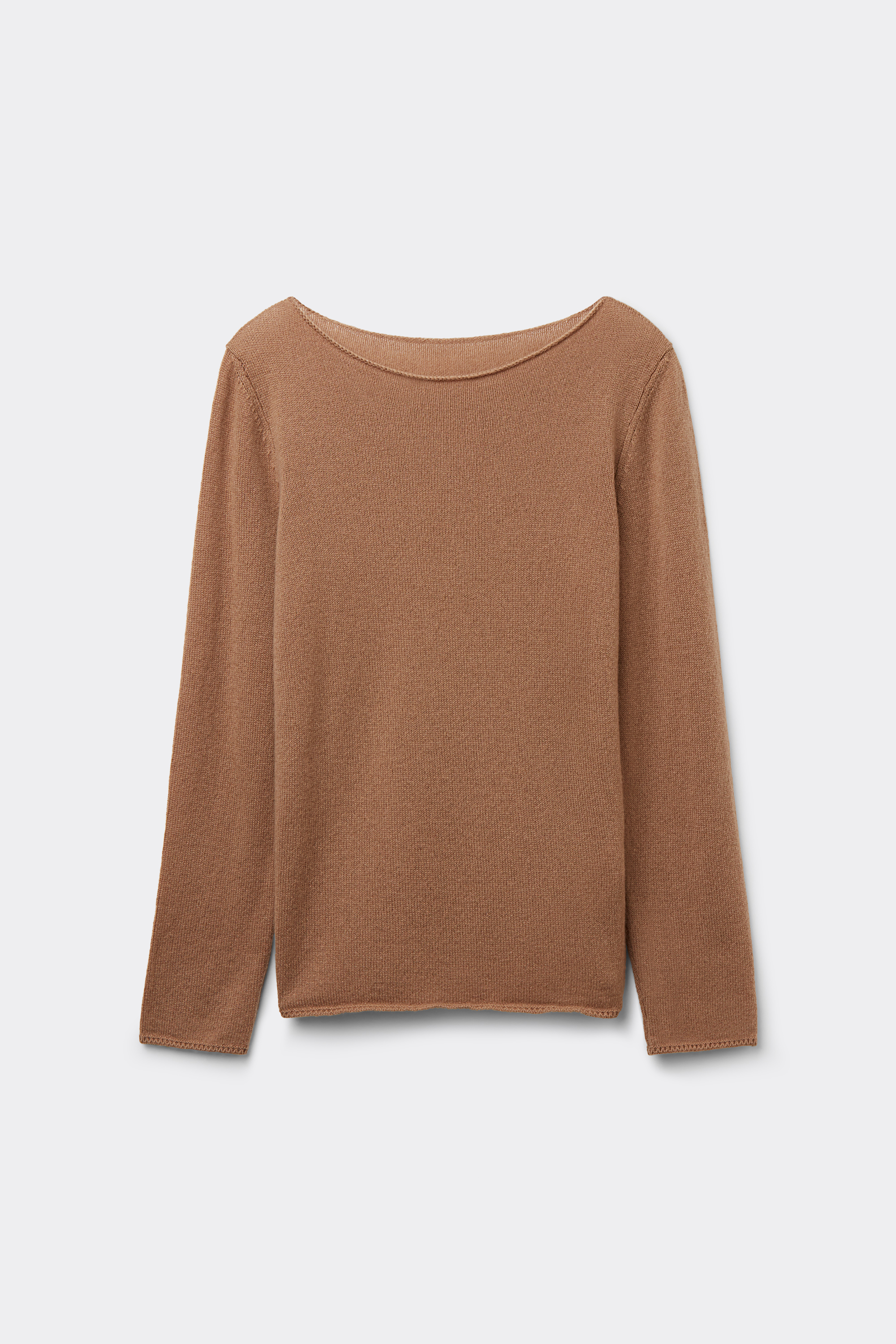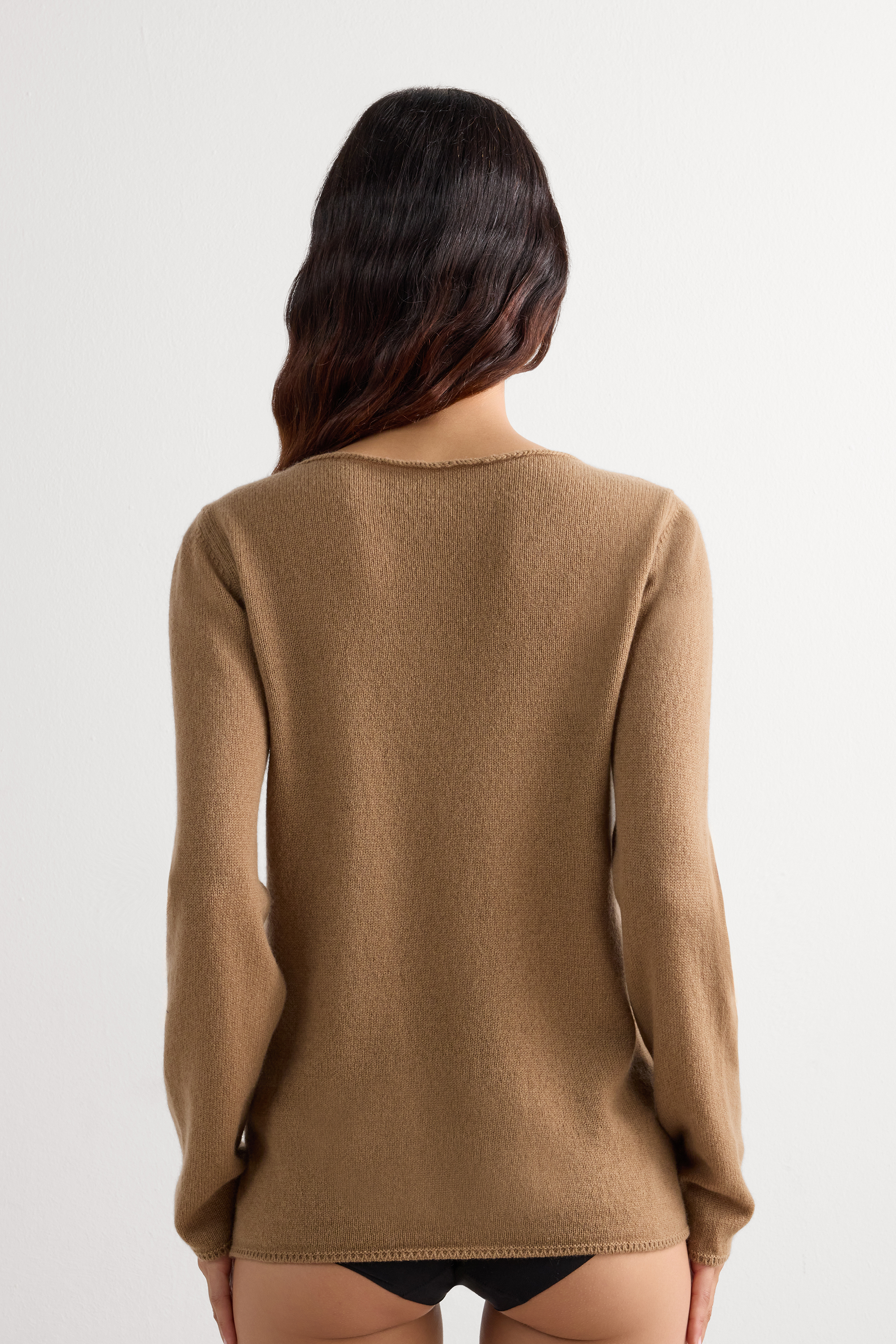 Джемпер чулочной вязки из 100% кашемира. Мягкая облегающая модель подчеркивает естественный силуэт. Отделка тамбурным швом. Идеально сочетается с топом из модала Ultralight с кашемиром: этот уютный комплект окутает вас словно мягкими теплыми объятиями.