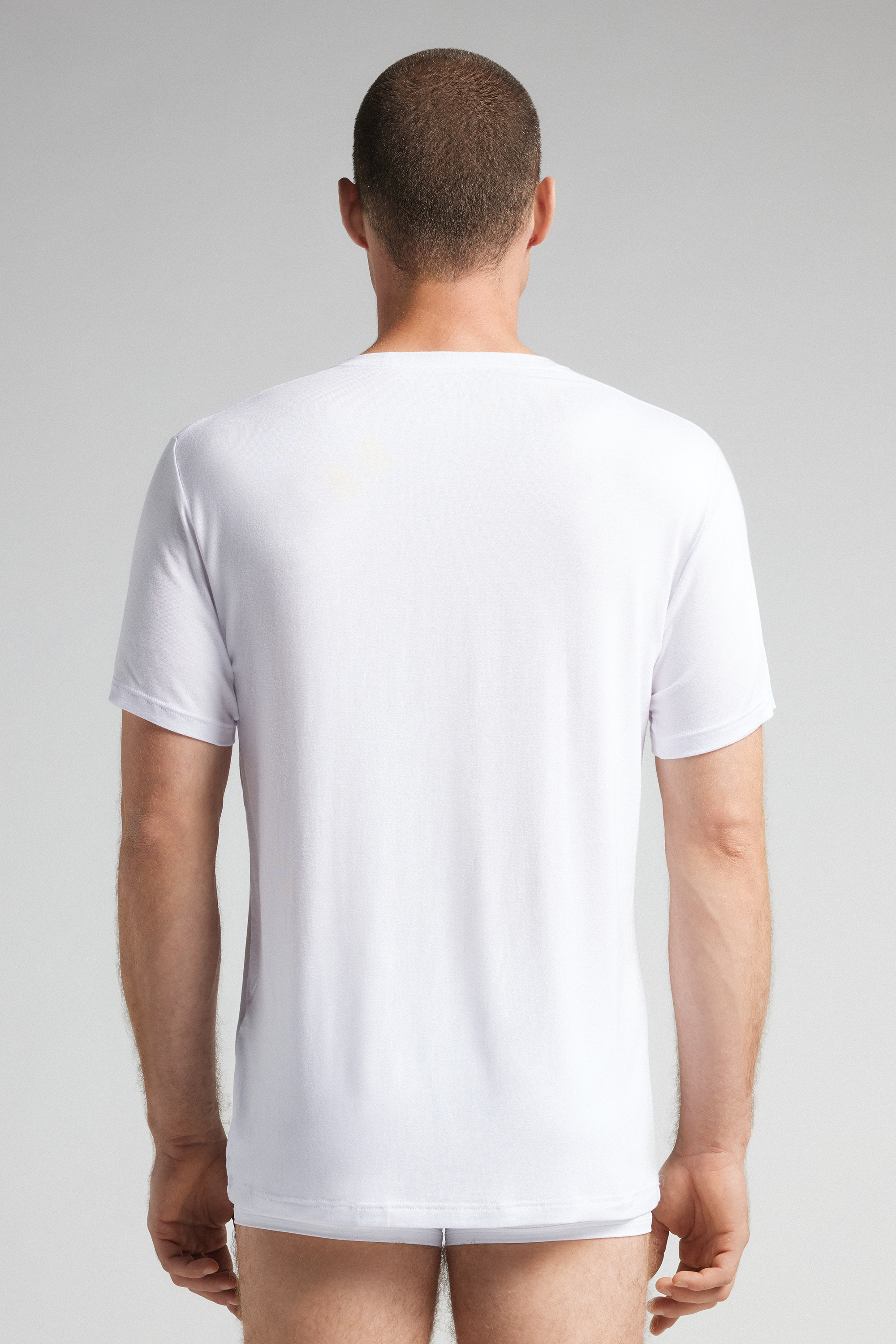 Футболка с круглым вырезом горловины. Удобная модель из мягкой ткани на основе модала и шелка. Футболку можно использовать в качестве нижнего слоя или носить как самостоятельное изделие. Этот товар можно купить только онлайн и в магазинах Intimissimi Uomo.