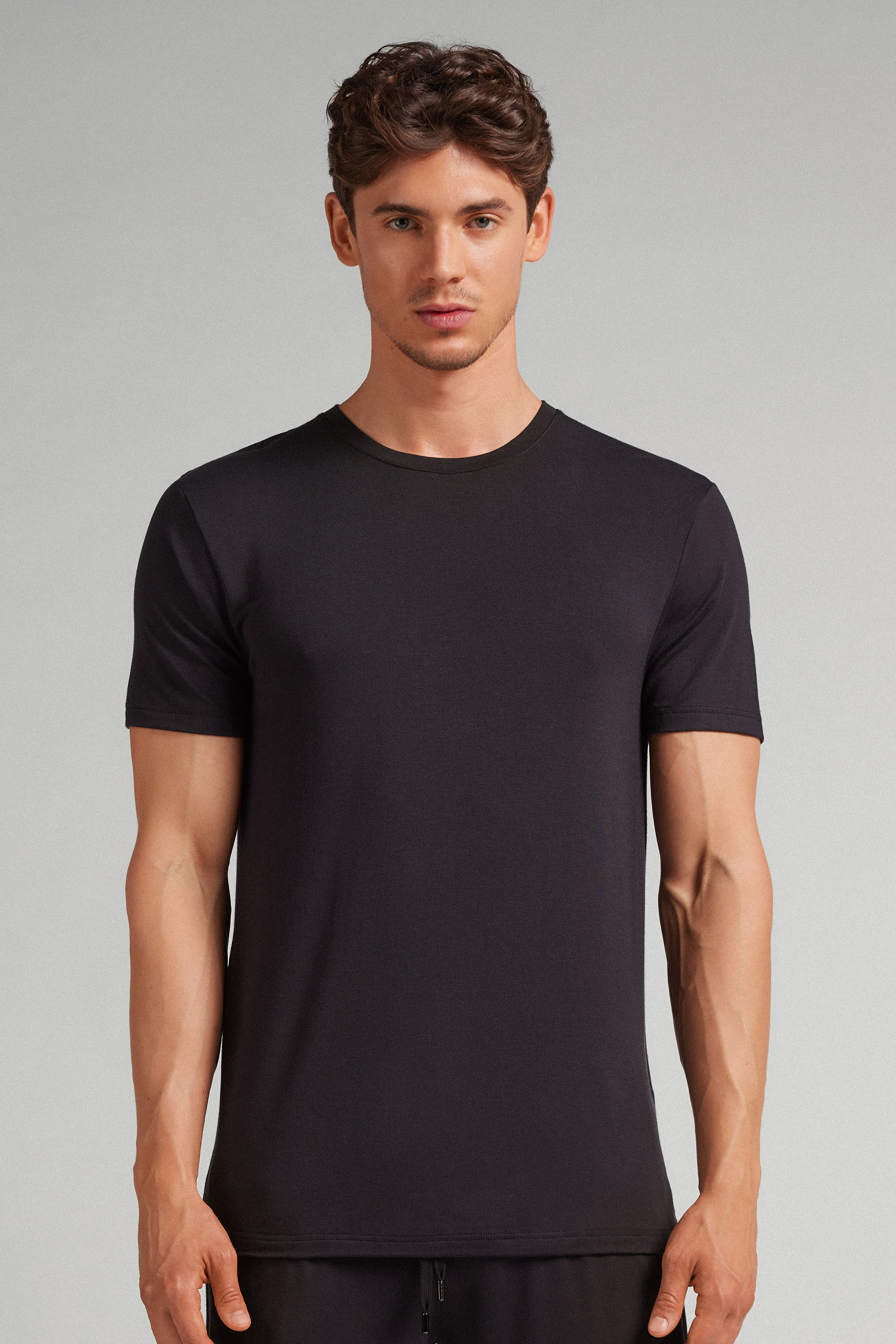 Футболка с круглым вырезом горловины. Удобная модель из мягкой ткани на основе модала и шелка. Футболку можно использовать в качестве нижнего слоя или носить как самостоятельное изделие. Этот товар можно купить только онлайн и в магазинах Intimissimi Uomo.