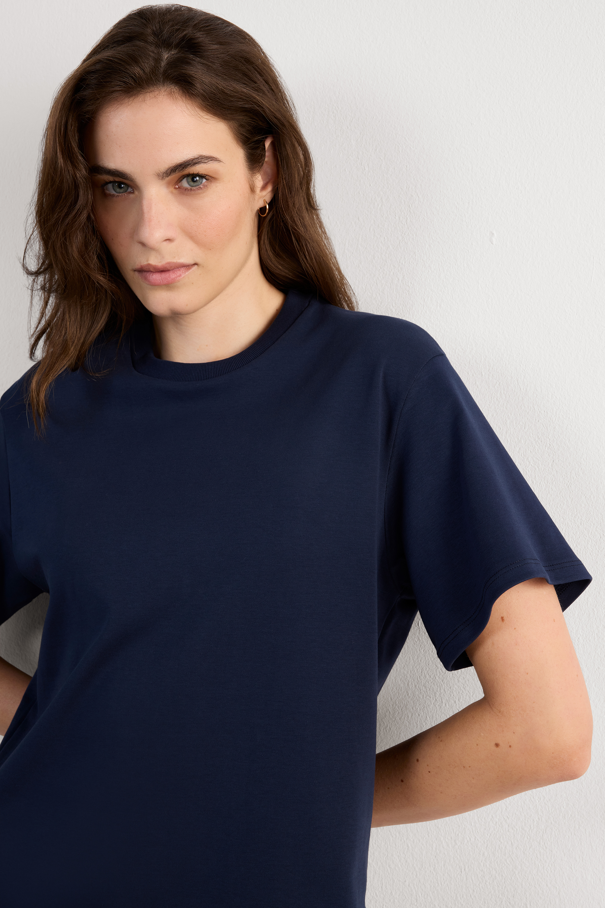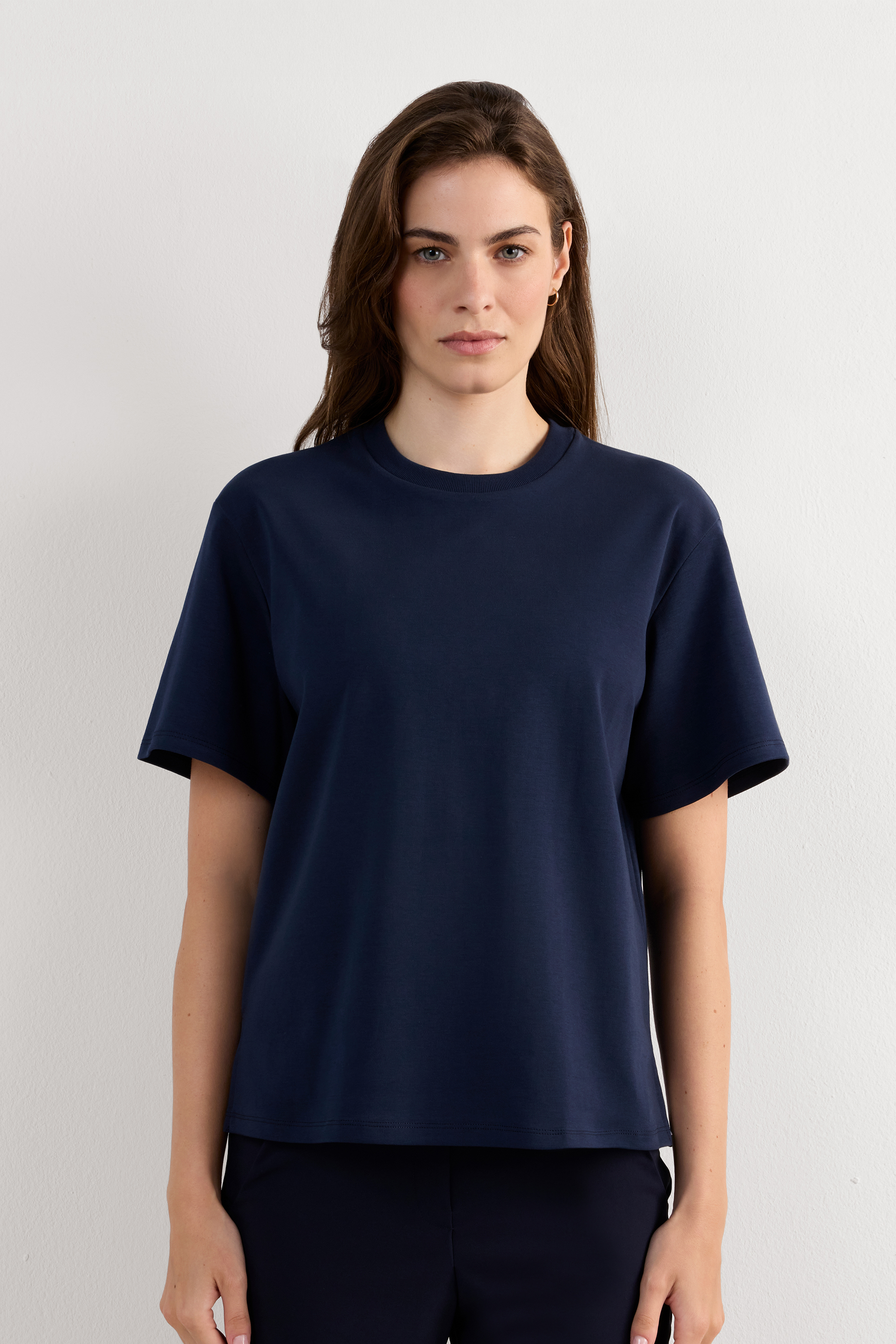 Трикотажный топ из плотного и очень мягкого на ощупь хлопка. Универсальная и неизменно актуальная модель в современном стиле, которую можно носить практически с чем угодно.
