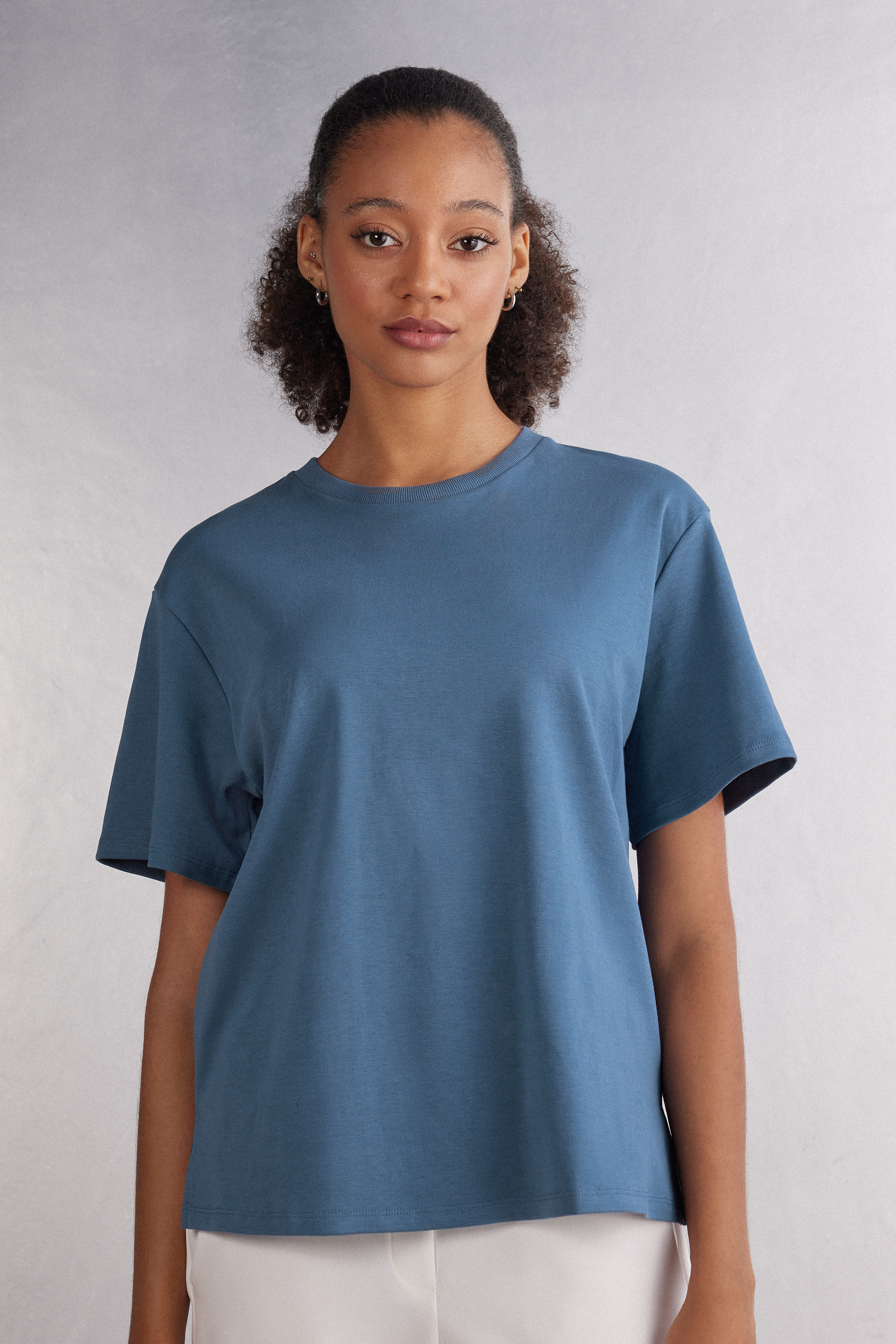 Трикотажный топ из плотного и очень мягкого на ощупь хлопка. Универсальная и неизменно актуальная модель в современном стиле, которую можно носить практически с чем угодно.