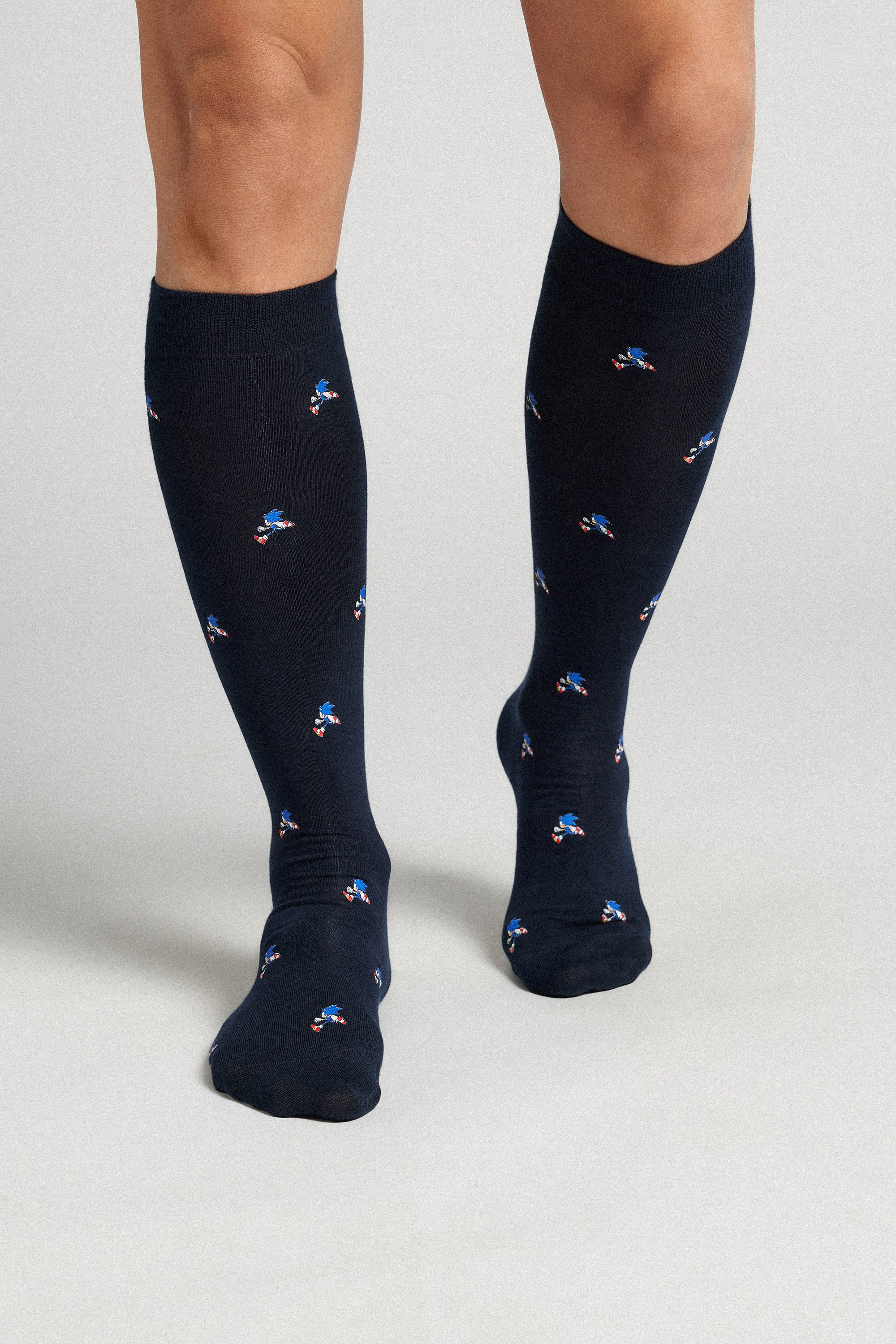 Гольфы из хлопка со сплошным микропринтом Sonic. Легкая и дышащая пряжа дарит ощущение свежести.
