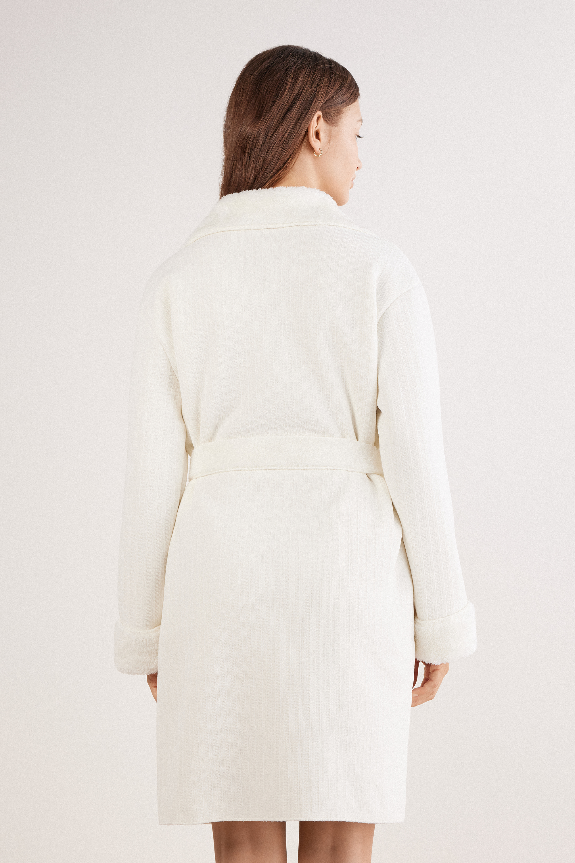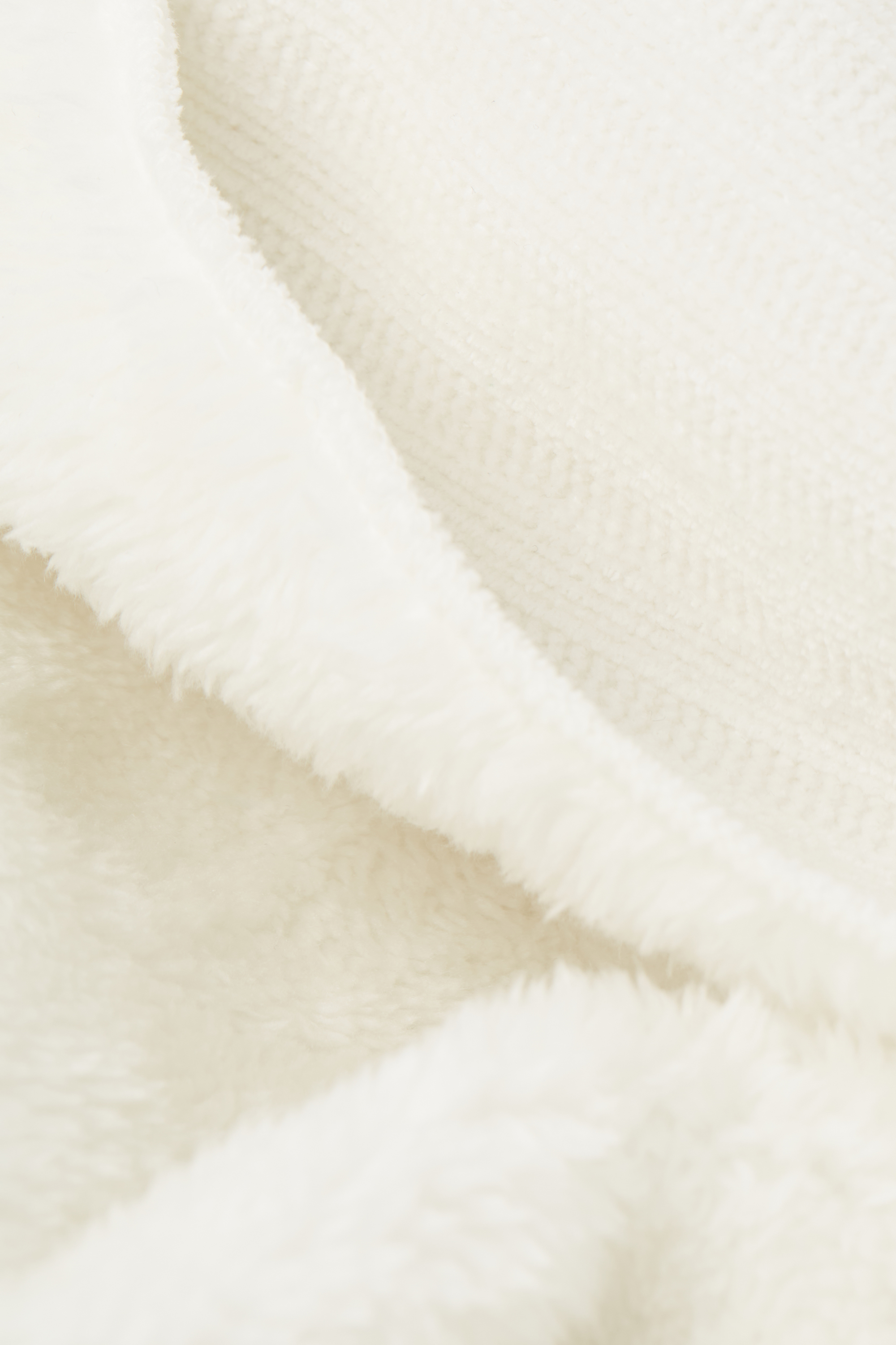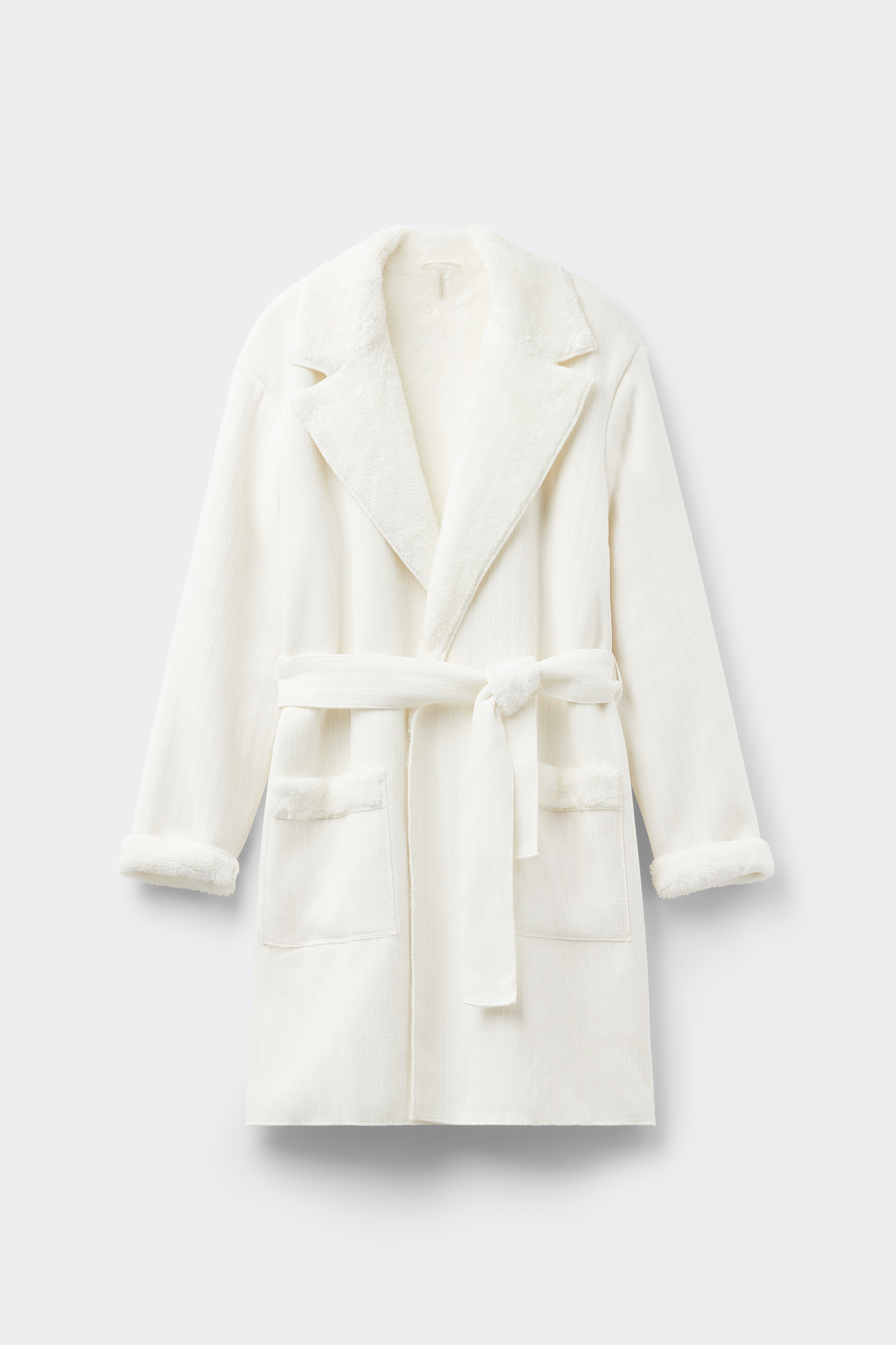 Халат из фактурного велюра с изнаночной стороной из мягкого и теплого флиса с эффектом меха.