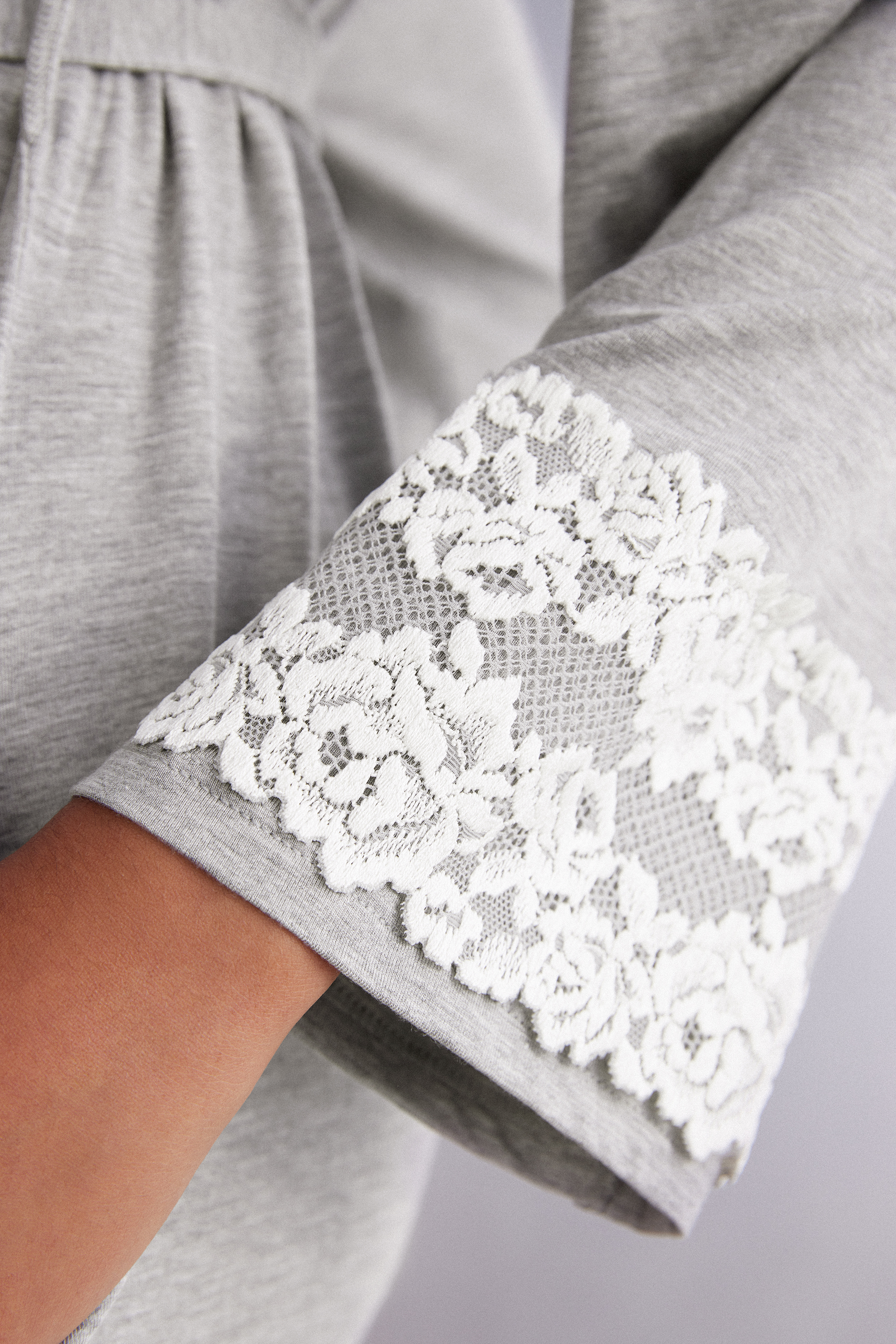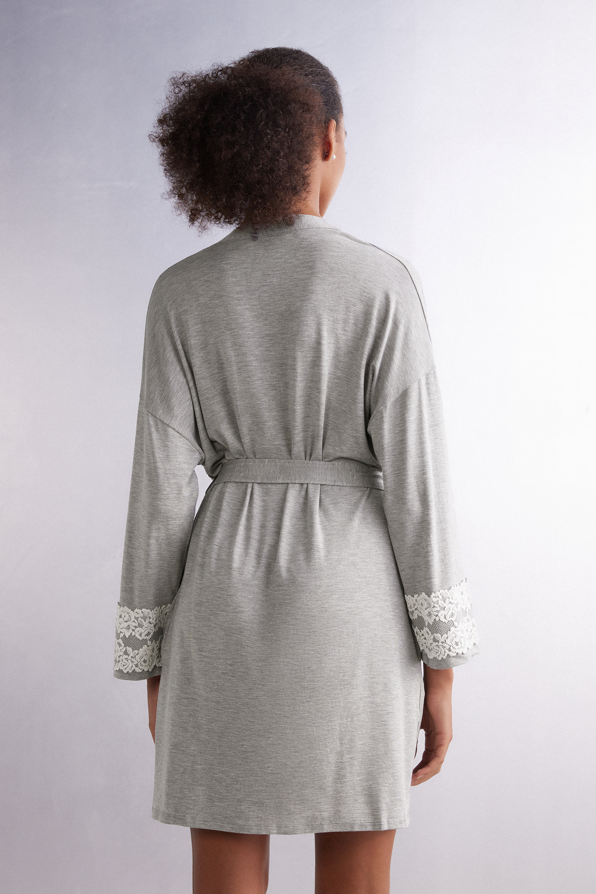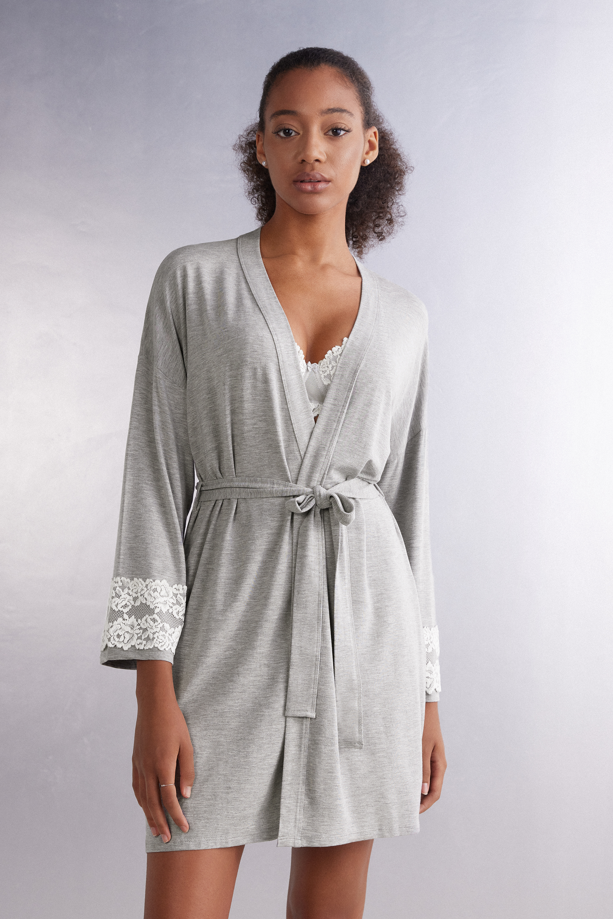 Халат из модала. Рукава кимоно «3/4» с каймой из двухцветного кружева.