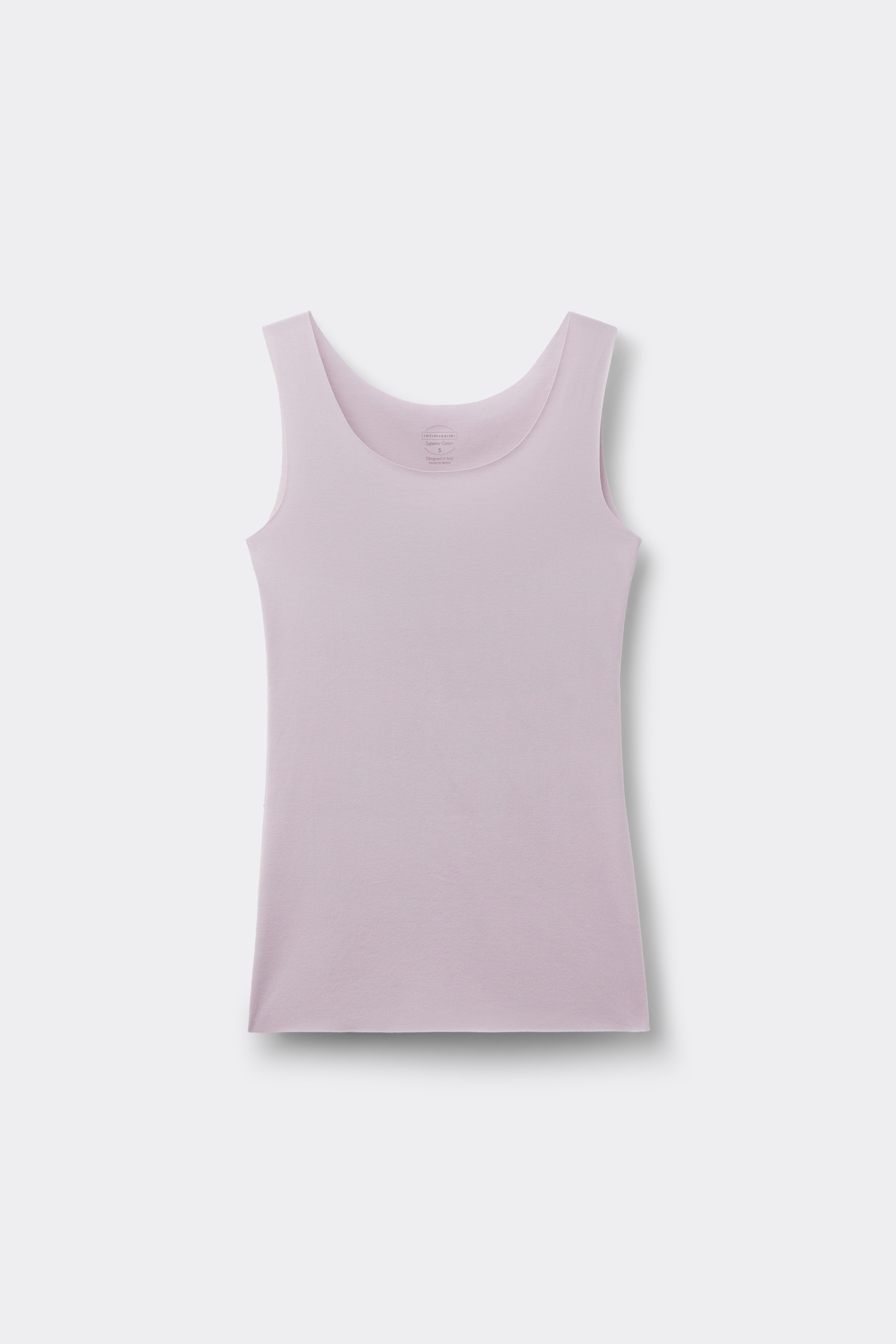 Майка с широкими бретелями и низким круглым вырезом. Модель из эластичного хлопка с открытыми срезами. Рост модели: 179 см. Размер изделия на фотографии: S.