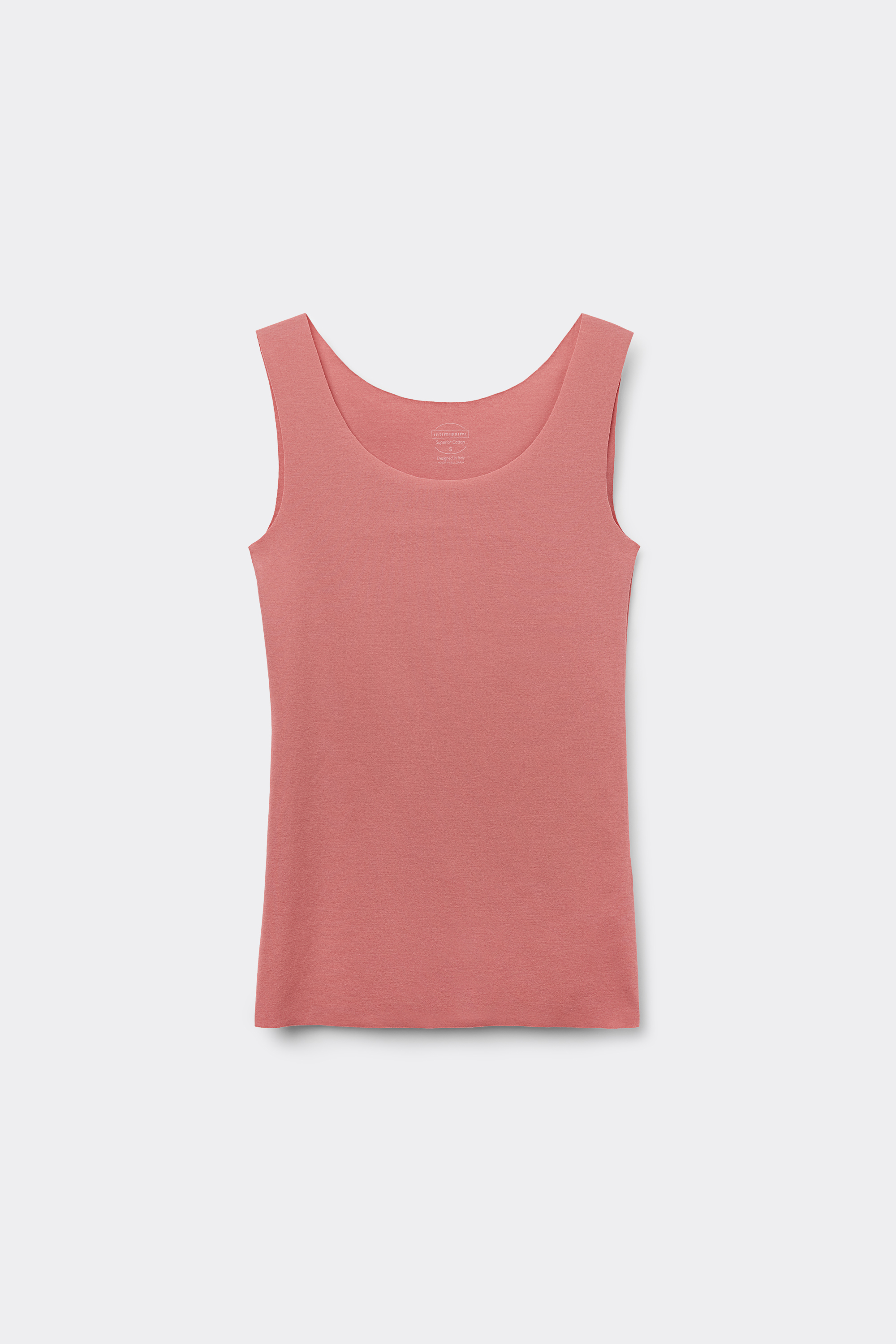 Майка с широкими бретелями и низким круглым вырезом. Модель из эластичного хлопка с открытыми срезами. Рост модели: 179 см. Размер изделия на фотографии: S.