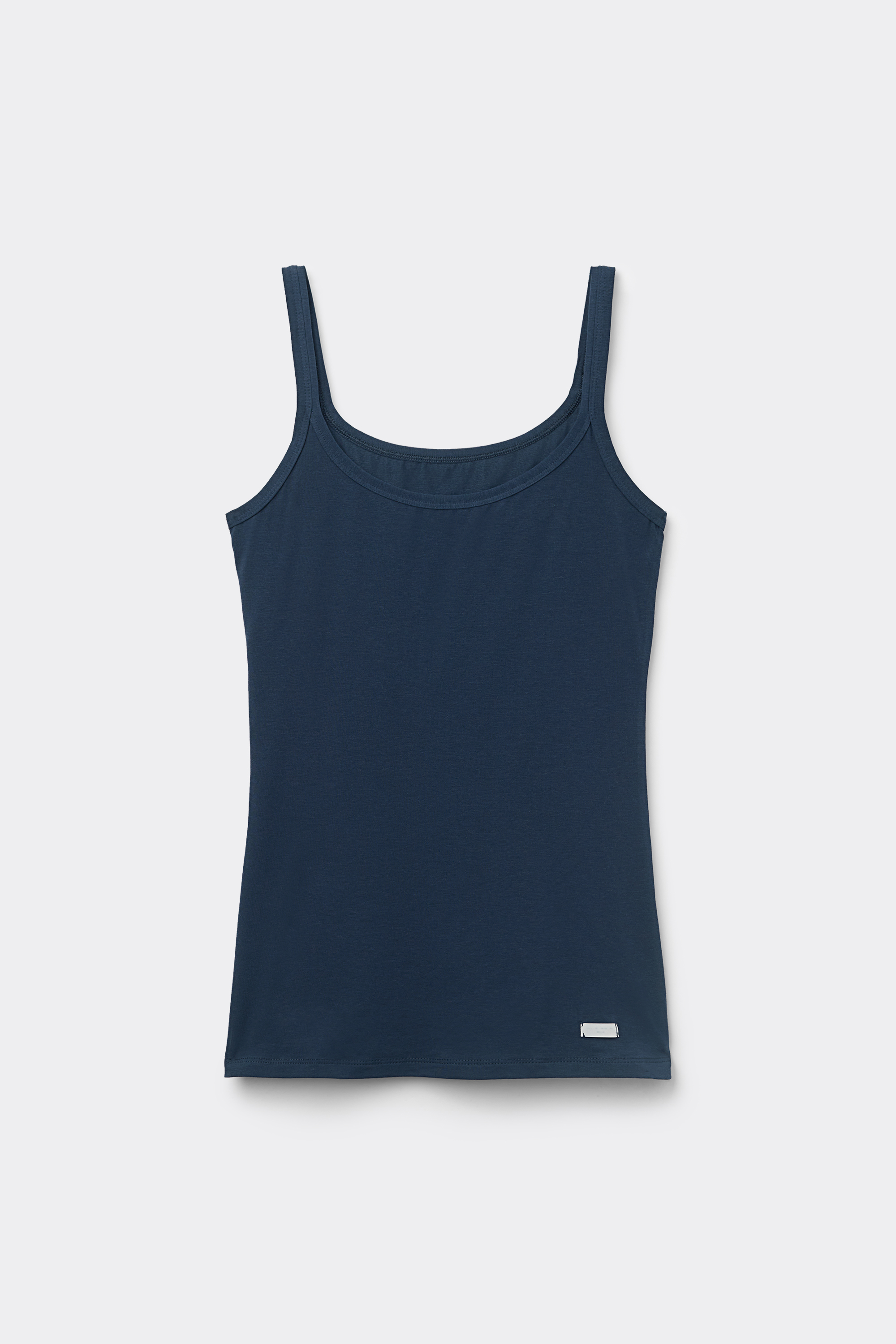 Топ на тонких бретелях, выполненный из мягкого хлопка. Благодаря облегающему силуэту эту модель можно носить не только в качестве нательного белья, но и надевать под другие трикотажные изделия. Рост модели: 179 см. Размер изделия на фотографии: S.