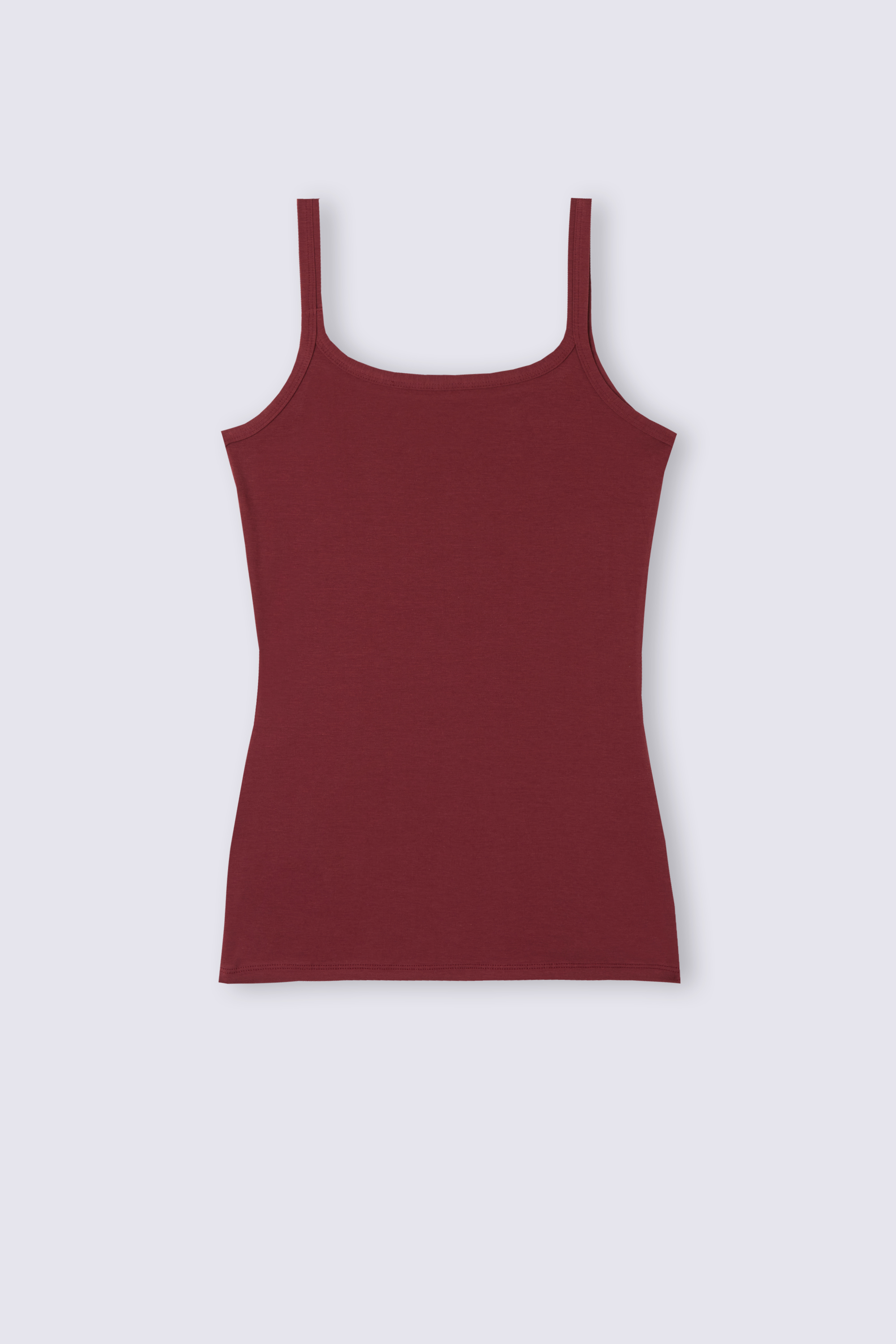 Топ на тонких бретелях, выполненный из мягкого хлопка. Благодаря облегающему силуэту эту модель можно носить не только в качестве нательного белья, но и надевать под другие трикотажные изделия. Рост модели: 179 см. Размер изделия на фотографии: S.