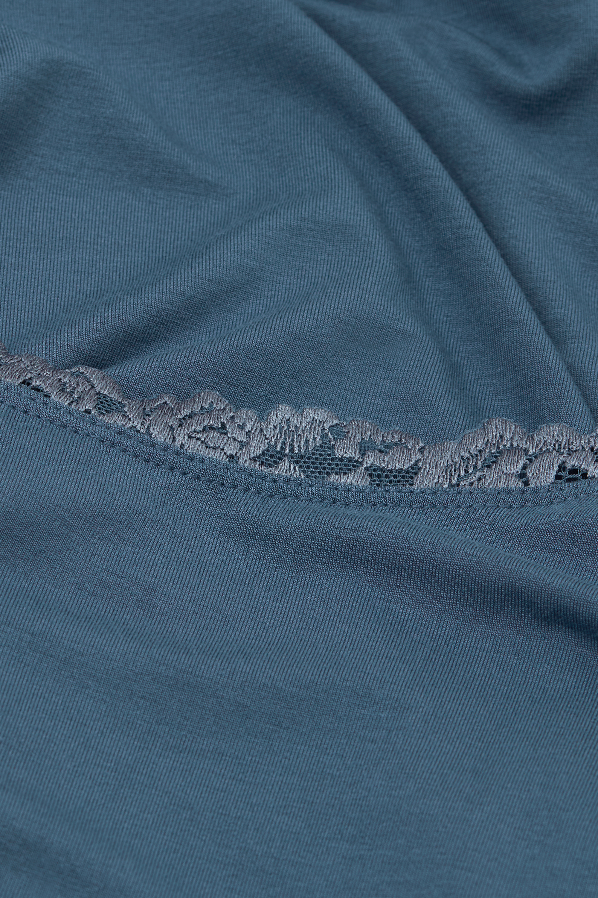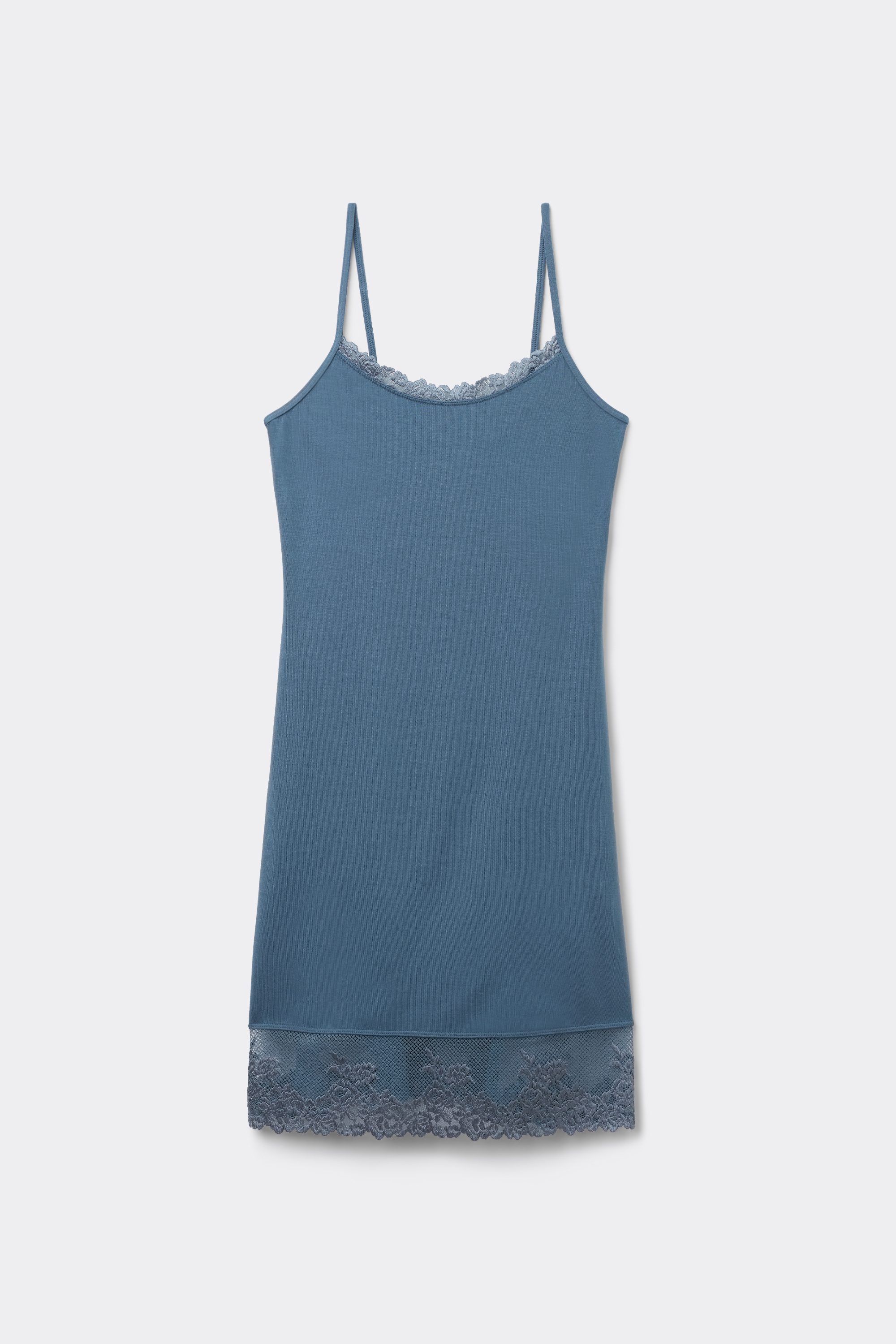 Комбинация на тонких бретелях из модала. Кружевная отделка вдоль выреза и по низу. В различных вариантах расцветки кружево может быть контрастным или тон в тон. Изделие можно носить под прозрачной одеждой или в качестве ночной рубашки. Облегающий крой.