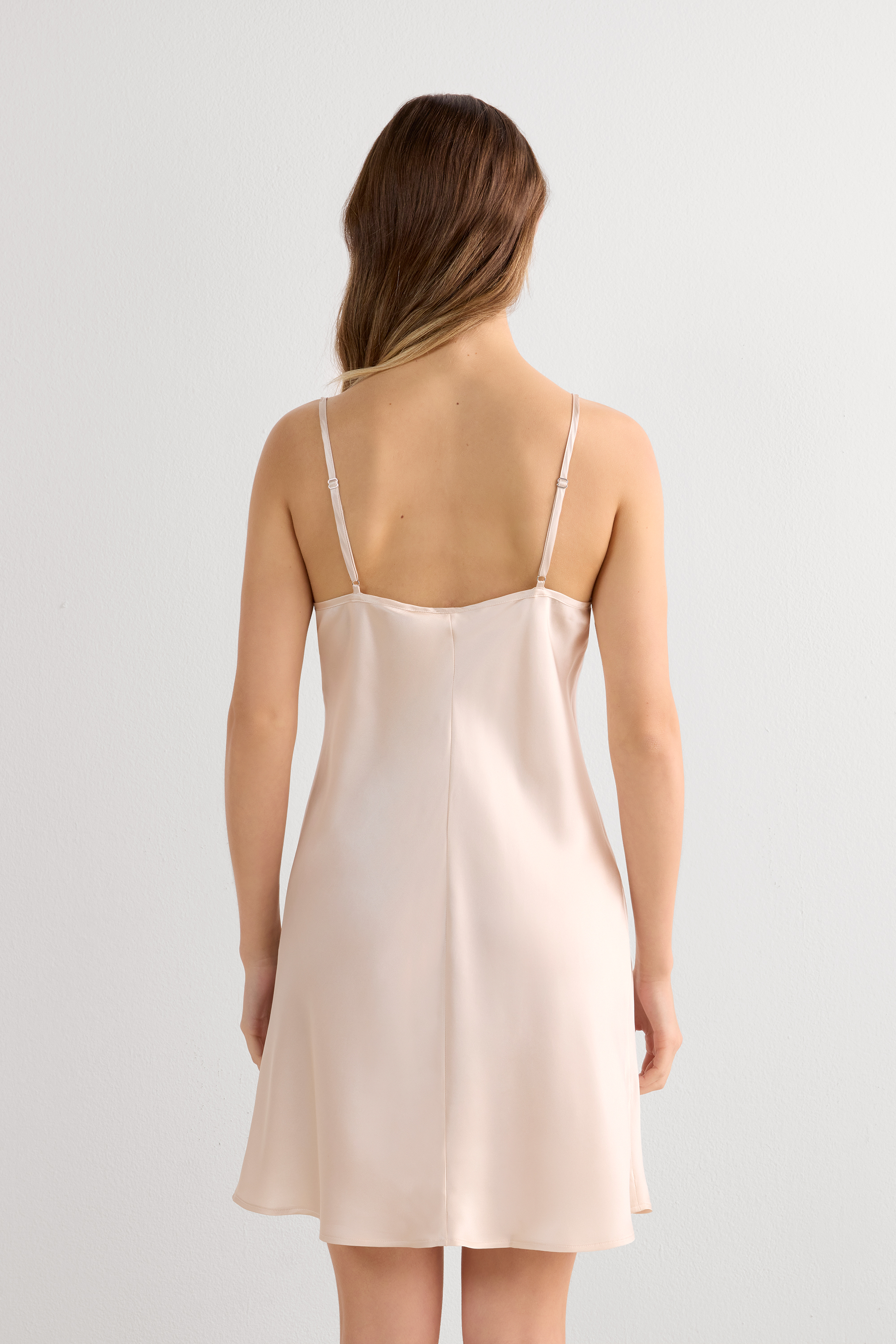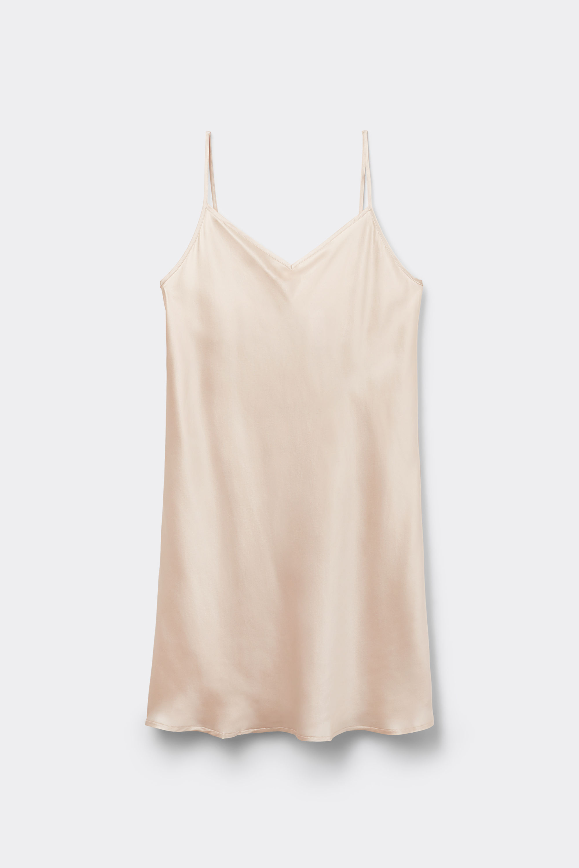 Комбинация из гладкого шелка с неглубоким V-образным вырезом на тонких регулируемых бретелях. Идеально сочетается с платьями, позволяет создать изящный силуэт.