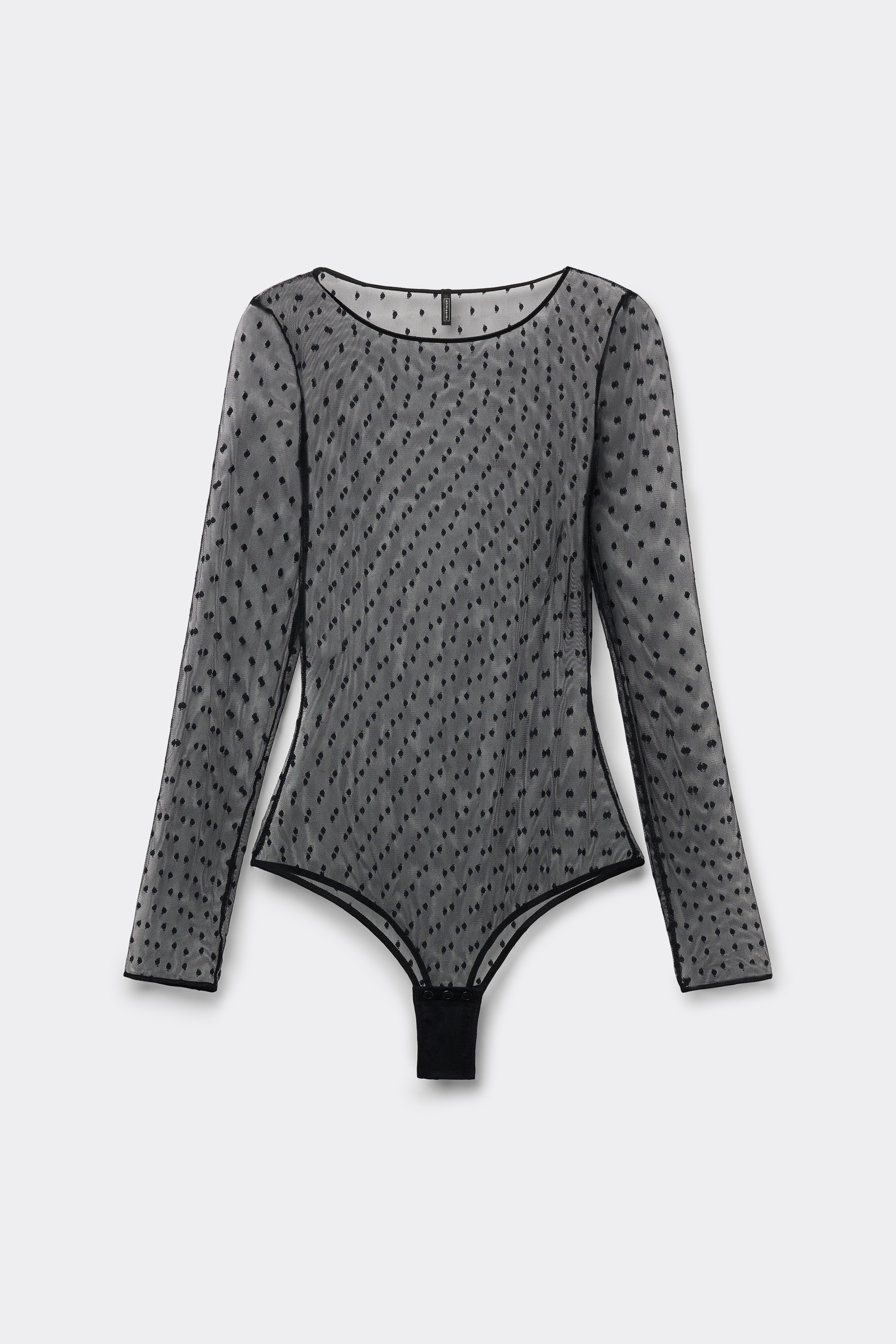 Женственное боди из романтического тюля с точечной вышивкой. Эта универсальная модель — обязательный элемент женского гардероба: она подходит как под жакет, так и для создания различных многослойных образов.