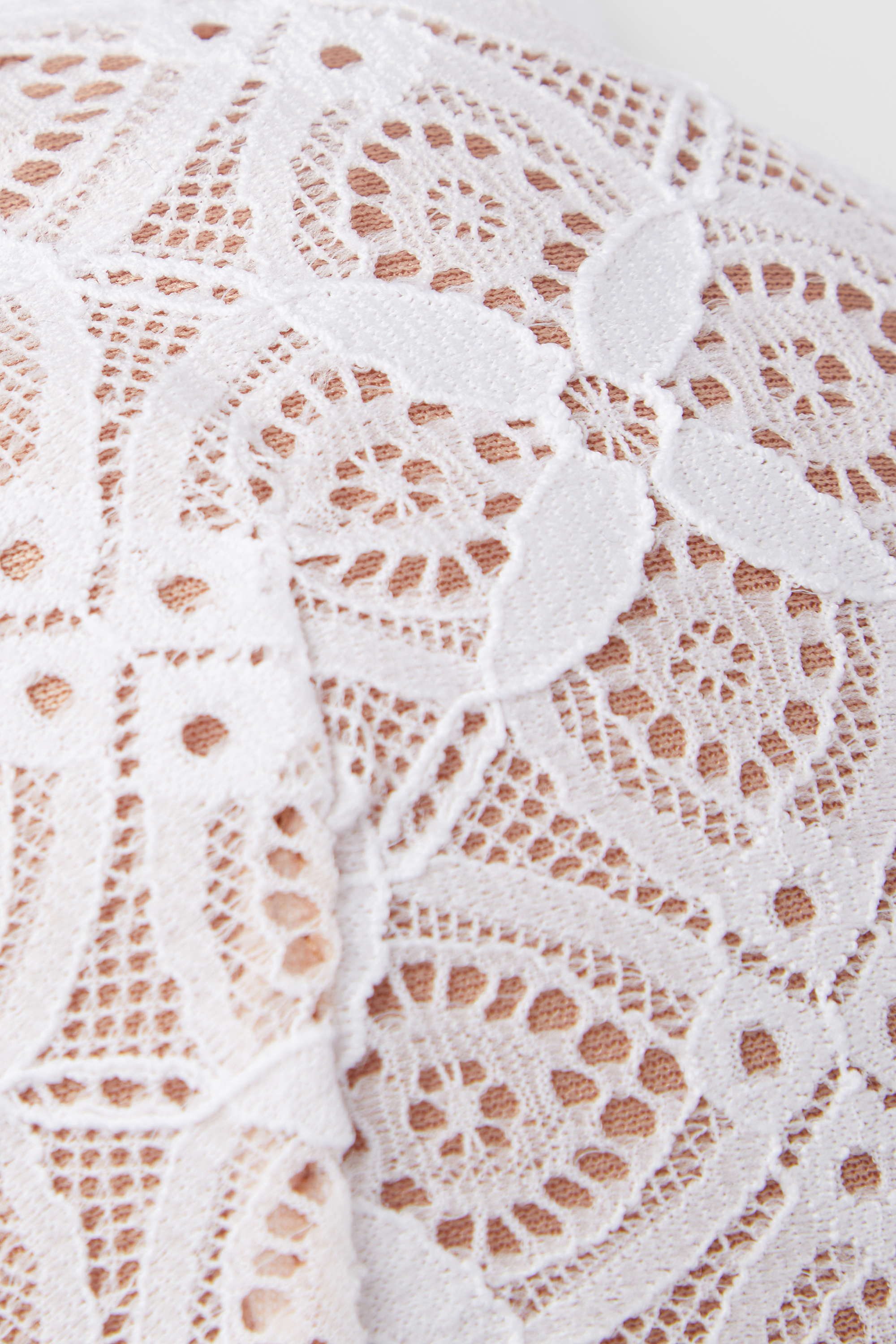 Кружево изготовлено из разлагаемой полиамидной пряжи, которая на 100% подлежит вторичной переработке и утилизируется в десять раз быстрее, чем обычный полиамид.