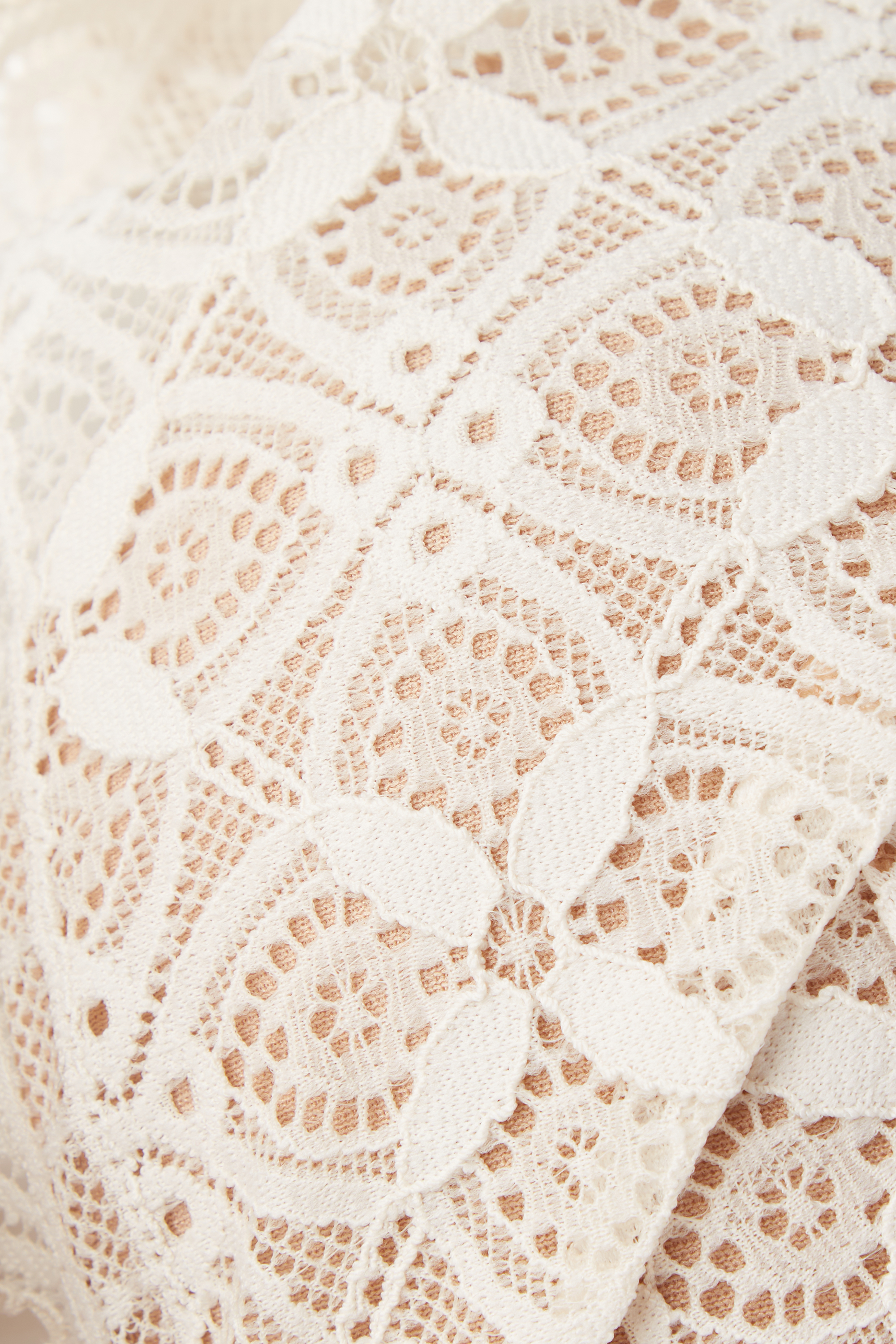 Кружево изготовлено из разлагаемой полиамидной пряжи, которая на 100% подлежит вторичной переработке и утилизируется в десять раз быстрее, чем обычный полиамид.