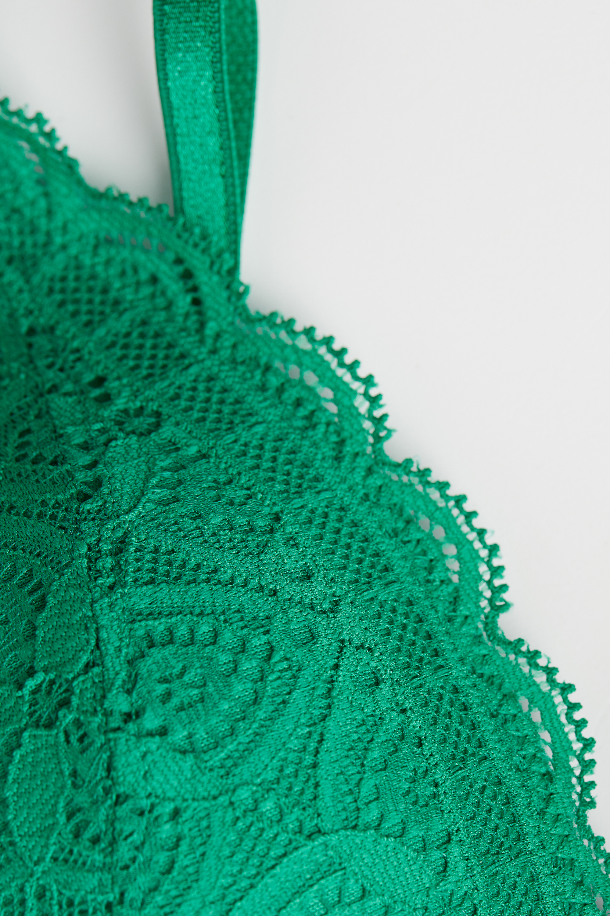 Кружево изготовлено из разлагаемой полиамидной пряжи, которая на 100% подлежит вторичной переработке и утилизируется в десять раз быстрее, чем обычный полиамид.