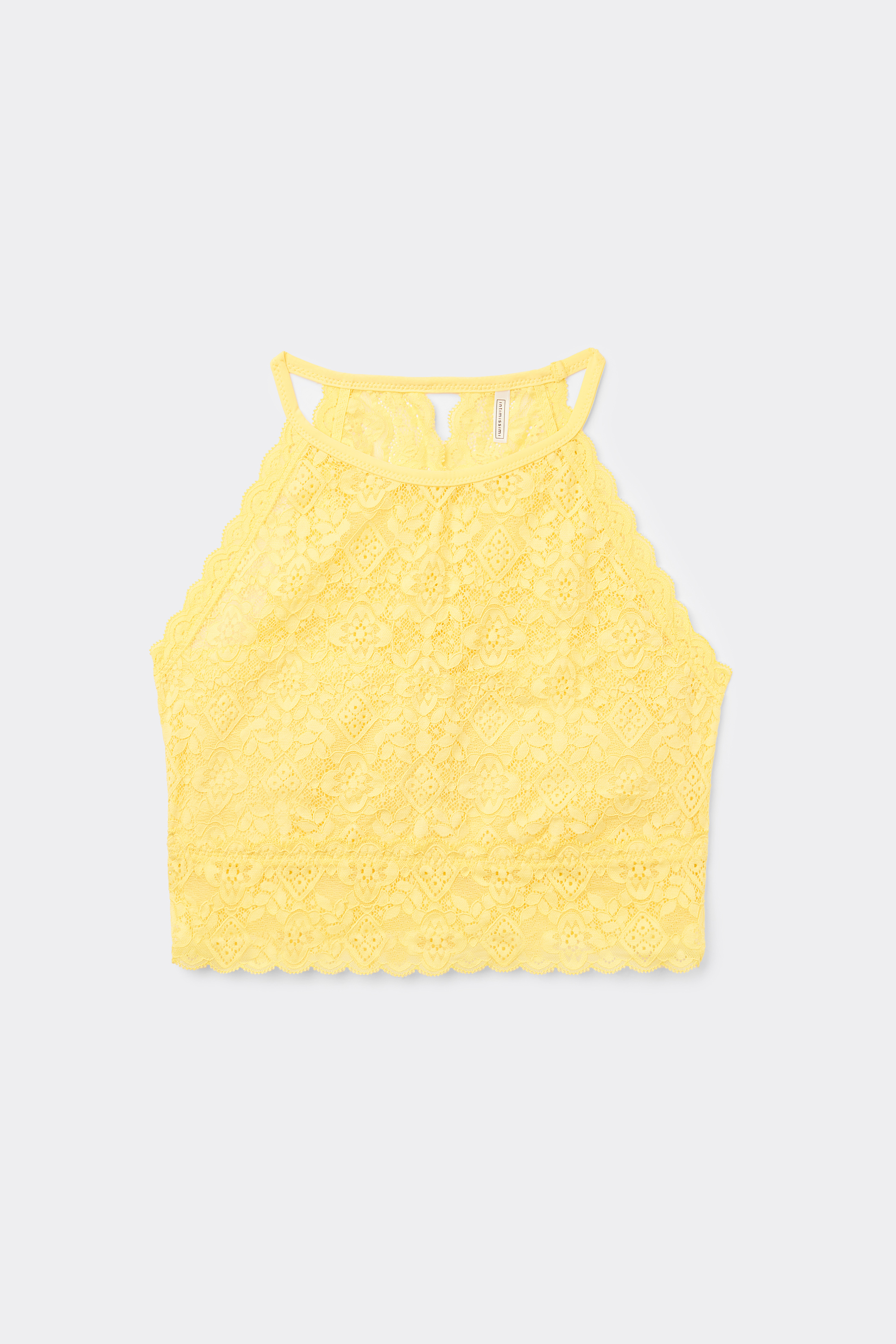 Кружевной топ-бралетт на подкладке из мягкой микрофибры в области груди. Спинка с декоративным вырезом по центру. Эту модель можно носить как с бюстгальтером бандо, так и отдельно — в качестве топа или под жакетом.
