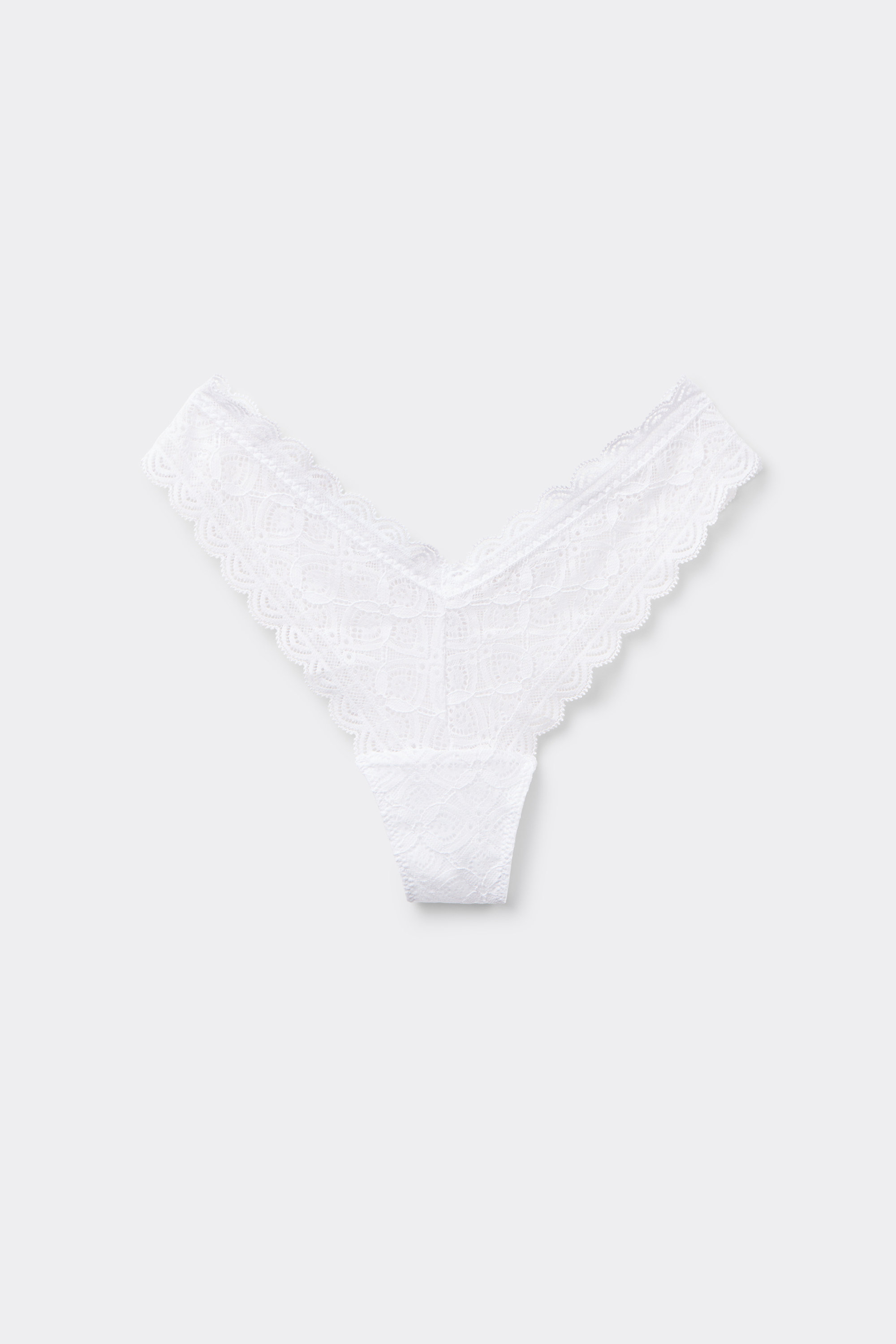 Бразильяно из эластичного кружева с геометрическим узором. Отделка каймой придает этой модели в стиле 80-х романтичные нотки. Ластовица: 100% хлопок. Модное изделие в гламурном стиле.