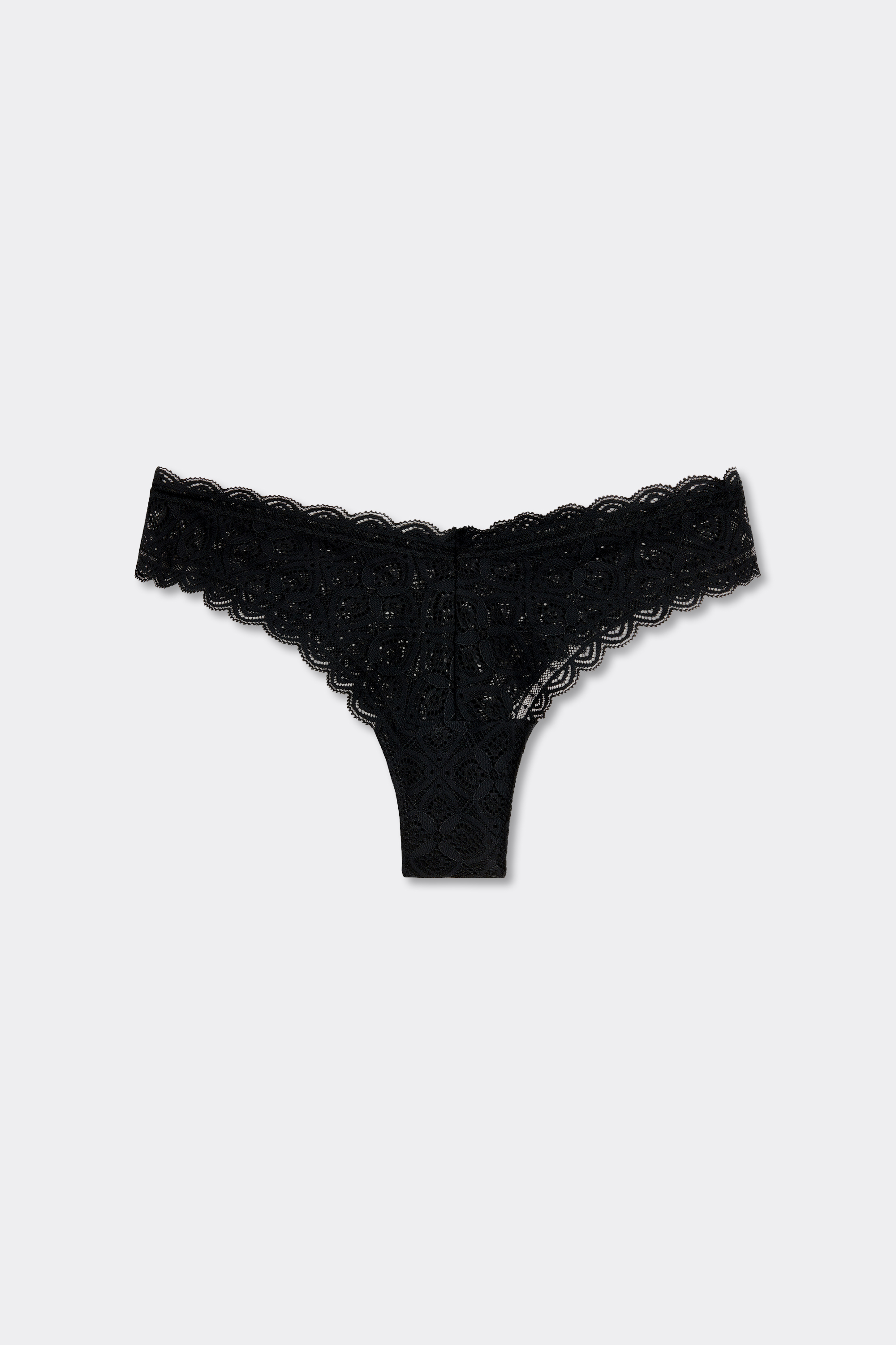 Бразильяно из эластичного кружева с геометрическим узором. Отделка каймой придает этой модели в стиле 80-х романтичные нотки. Ластовица: 100% хлопок. Модное изделие в гламурном стиле.