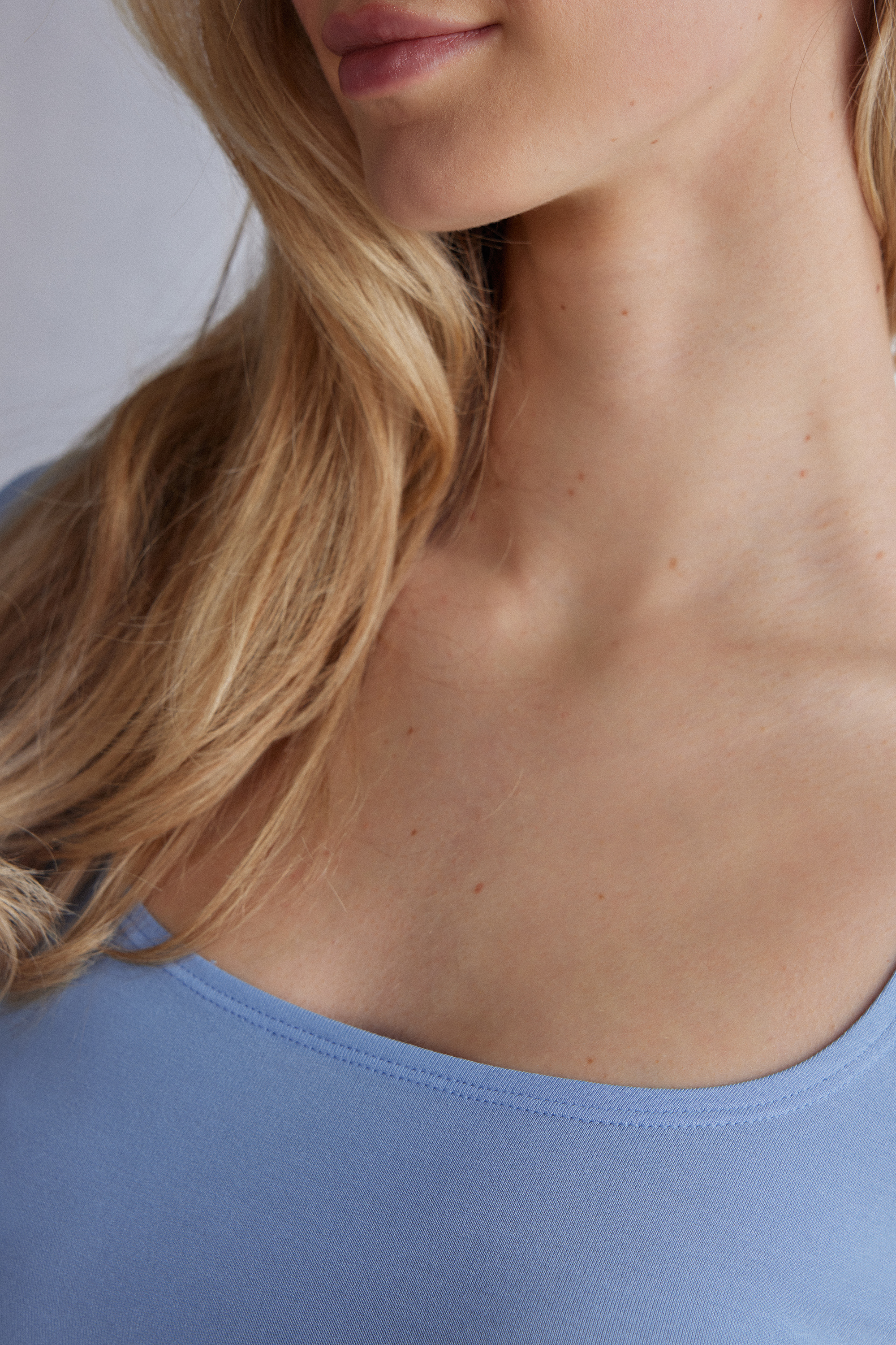 Лонгслив с глубоким круглым вырезом горловины, выполненный из мягкого микромодала. Облегающий крой.