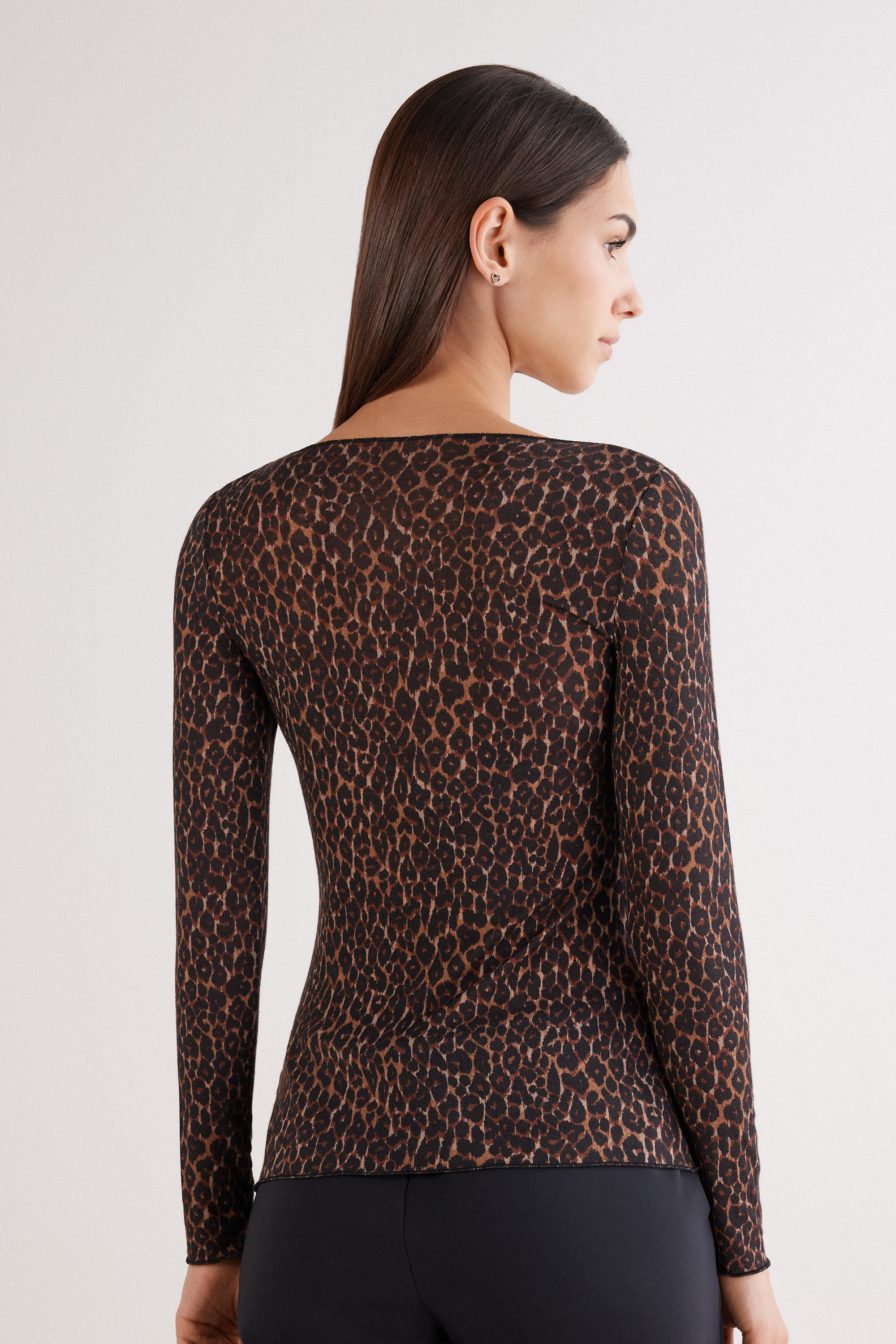 Лонгслив с Анималистическим Леопардовым Принтом из Модала Ultralight с Кашемиром