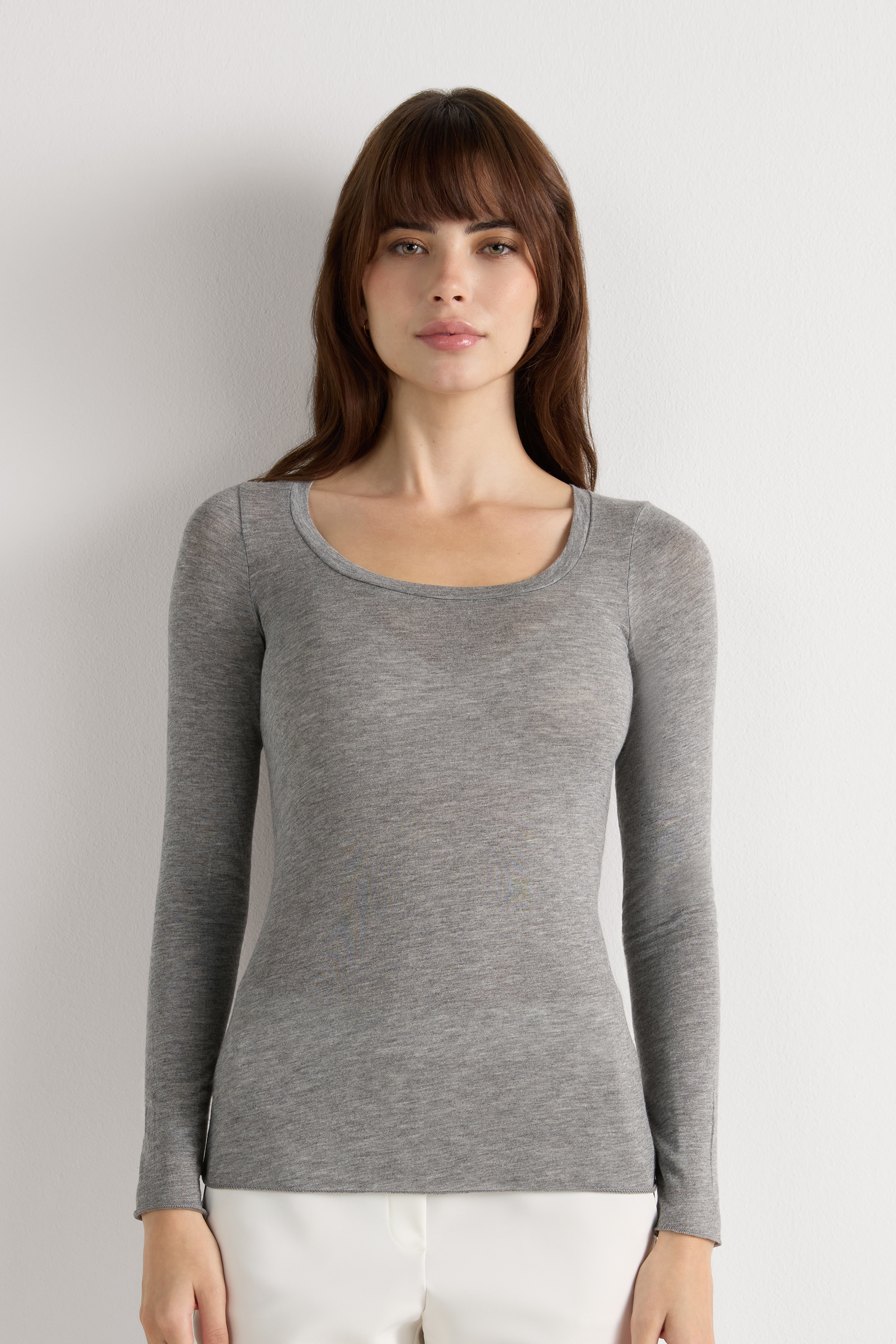 Лонгслив с Низким Круглым Вырезом из Модала Ultralight с Кашемиром